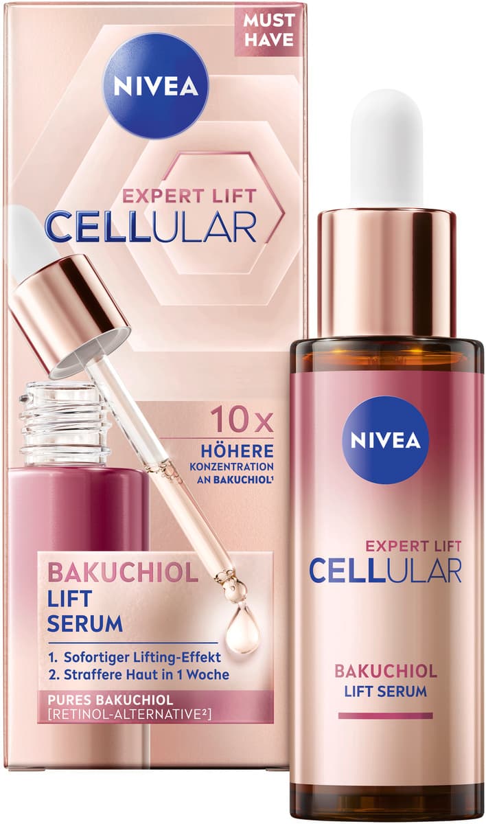 Das NIVEA Expert Lift Cellular 3-Zonen Lift Serum wurde speziell für die Pflege von Gesicht, Hals und Dekolleté entwickelt. Die leichte Formel mit purem Bakuchiol verleiht ein gepflegtes Hautgefühl.
