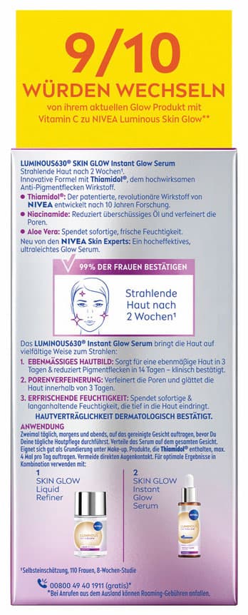 Produkte, die Thiamidol® enthalten, max. 4 Mal pro Tag auftragen. Vermeide direkten Augenkontakt.