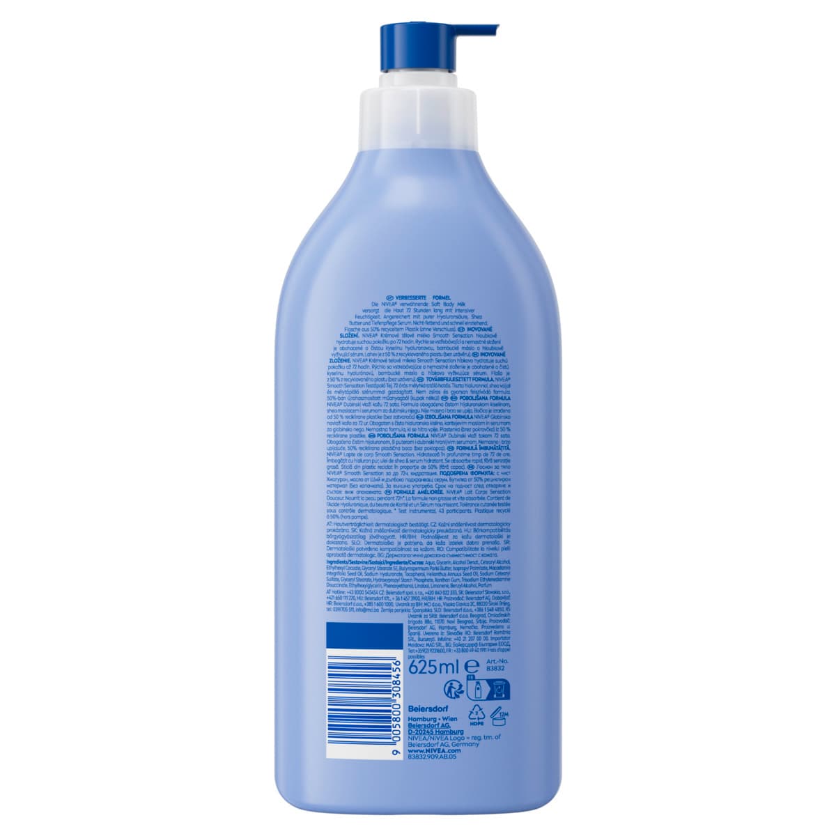 Verwandeln Sie Ihre trockene Haut mit der NIVEA Smooth Sensation Körperlotion, mit der neuen und verbesserten Formel, die klinisch erwiesen 72h Feuchtigkeit spendet. Für gesund aussehende Haut bei jeder Anwendung: Die nährende Formel mit reinem Hyaluron, Sheabutter und Deep Nourish Serum bietet verwöhnende Pflege und ist perfekt für trockene Haut. Manche Hautpartien trocknen schneller aus als andere. Deshalb ist es wichtig, ihr das ganze Jahr über zusätzliche Pflege zukommen zu lassen. NIVEA pflegt Ihre Haut und unseren Planeten. Neue verbesserte Flasche mit weniger Kunststoff als bisher / Flasche aus 50 % recyceltem Kunststoff (ohne Pumpe). NIVEA ist in über 160 Ländern präsent und die weltweite Nummer 1 unter den Hautpflegemarken* mit mehr als 100 Jahren Erfahrung. Als Marktführer in der globalen Hautpflegebranche nutzen wir unser Know-how, um sorgfältig die hochwertigsten Inhaltsstoffe auszuwählen und hautverträgliche, dermatologisch geprüfte Produkte für verschiedene Hauttypen und
