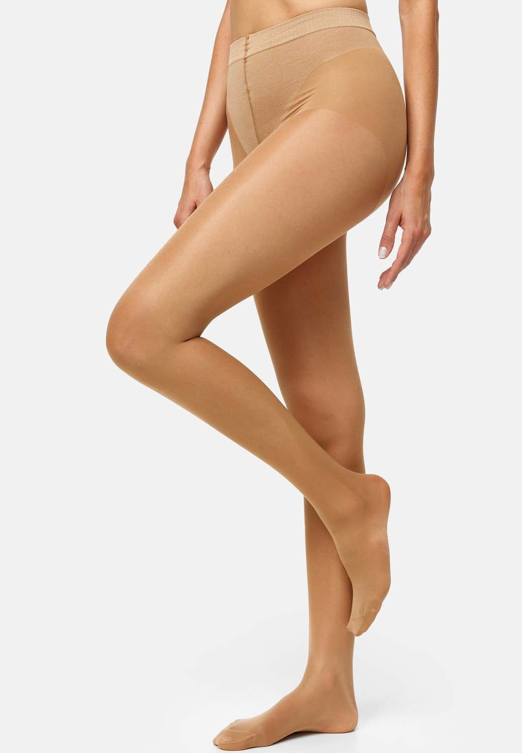 - Bestätigt als LYCRA® BEAUTY Feinstrumpfhose - Formt einen flachen Bauch ohne einzuengen - Brillant glänzende Optik für attraktive Beine - Sitzt perfekt durch die Verarbeitung der Faser LYCRA® - Gute Passform dank Komfortbund, Qualitätsflachnaht und Baumwollzwickel (Größe XL mit Komfortzwickel) - Leicht verstärkte Spitze