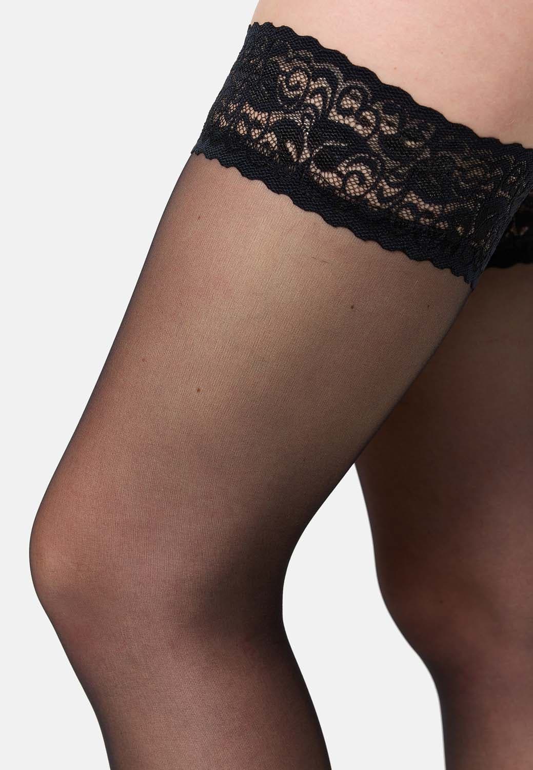 Laufmaschensichere, strapazierfähige, transparente halterlose Strümpfe in matter Optik. Innovative LYCRA® FUSION® Technologie verhindert, dass aus einem kleinen Loch eine Laufmasche wird. Ein gleichmäßiges Maschenbild und edle Optik durch die Verwendung von LYCRA® in jeder Reihe. Ein Klassiker im Strumpfhosen-Sortiment.