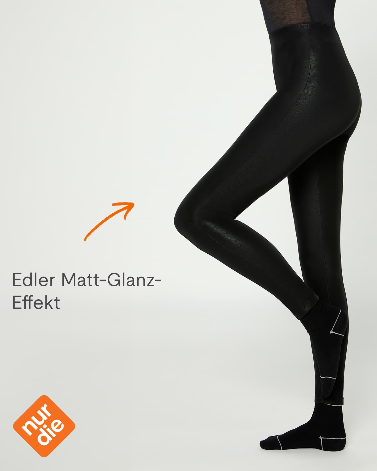 Die Lederoptik Leggings von NUR DIE kombiniert einen stylischen Velvet-Look mit samtigem Komfort. Das Material im Velvet-Look sorgt für einen edlen Matt-Glanz-Effekt und ist dabei absolut blickdicht – perfekt für angesagte Indoor- oder Outdoor-Outfits. Die leicht angeraute Innenseite fühlt sich weich auf der Haut an, während Elasthan optimale Bewegungsfreiheit bietet. Der breite Komfortbund sorgt für einen angenehmen Sitz, ohne einzuengen. Mit ihrer körpernahen Passform und dem eng anliegenden Bein schmiegt sich die Leggings wie eine zweite Haut an und setzt deine Silhouette gekonnt in Szene. Ob lässig kombiniert mit Oversize-Strick oder als Fashion-Statement mit Boots – diese vegane Leder-Leggings ist ein vielseitiges Must-have für alle, die Style und Tragekomfort vereinen möchten.