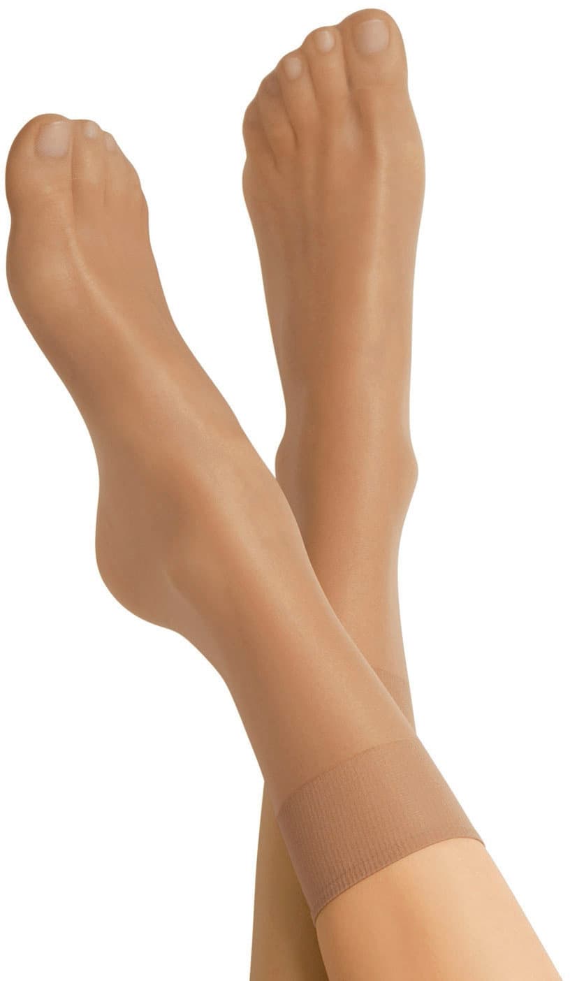 Transparente, seidig glänzende Feinsöckchen mit extra langem Schaft. Angenehm breiter Komfortbund. Sitzen perfekt durch die Verarbeitung der Faser LYCRA®. Leicht verstärkte Fußspitze. 15 den / 17 dtex. Für alle Größen geeignet.