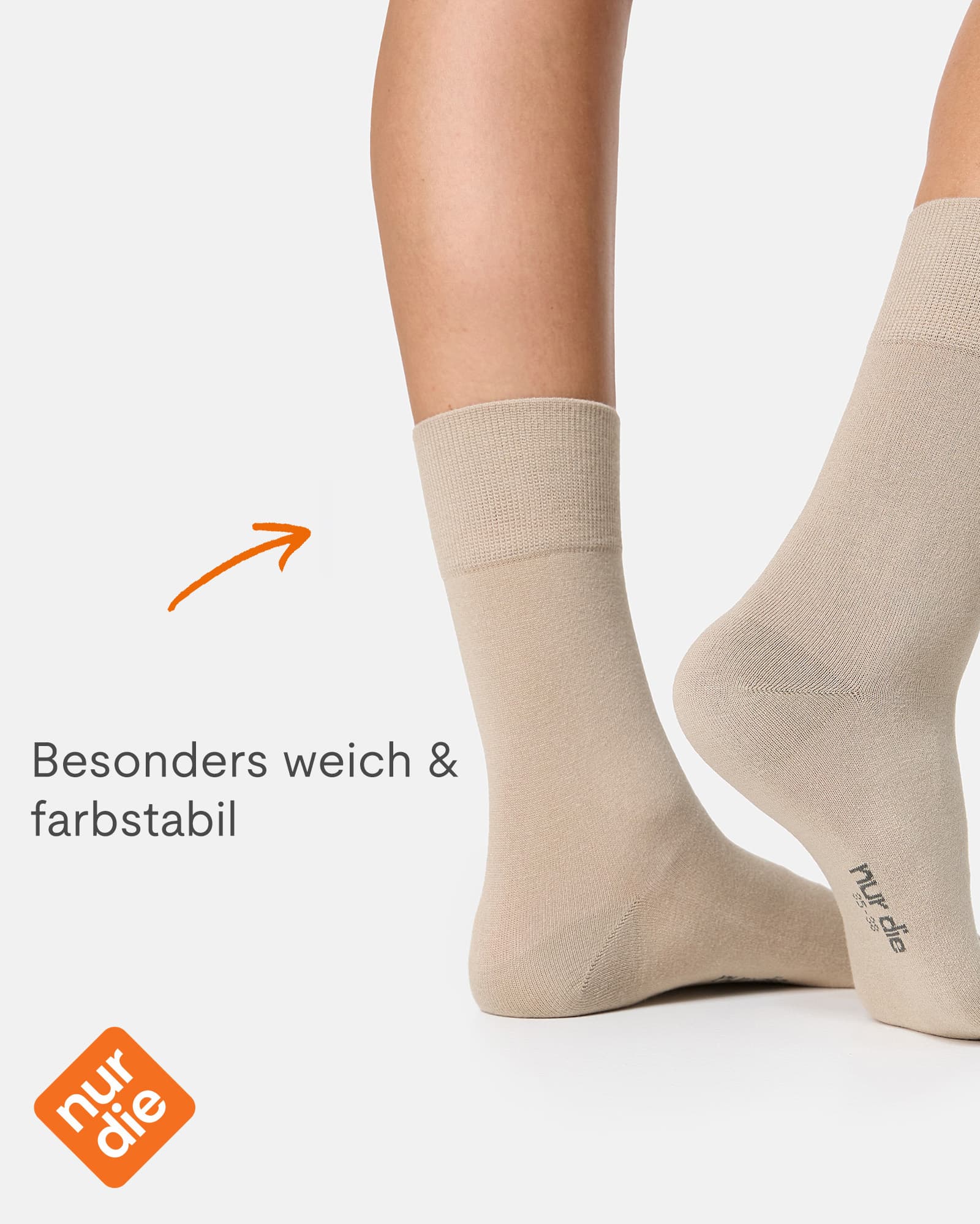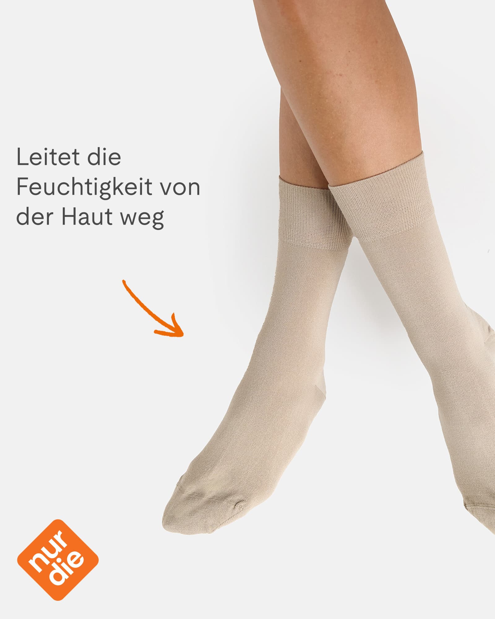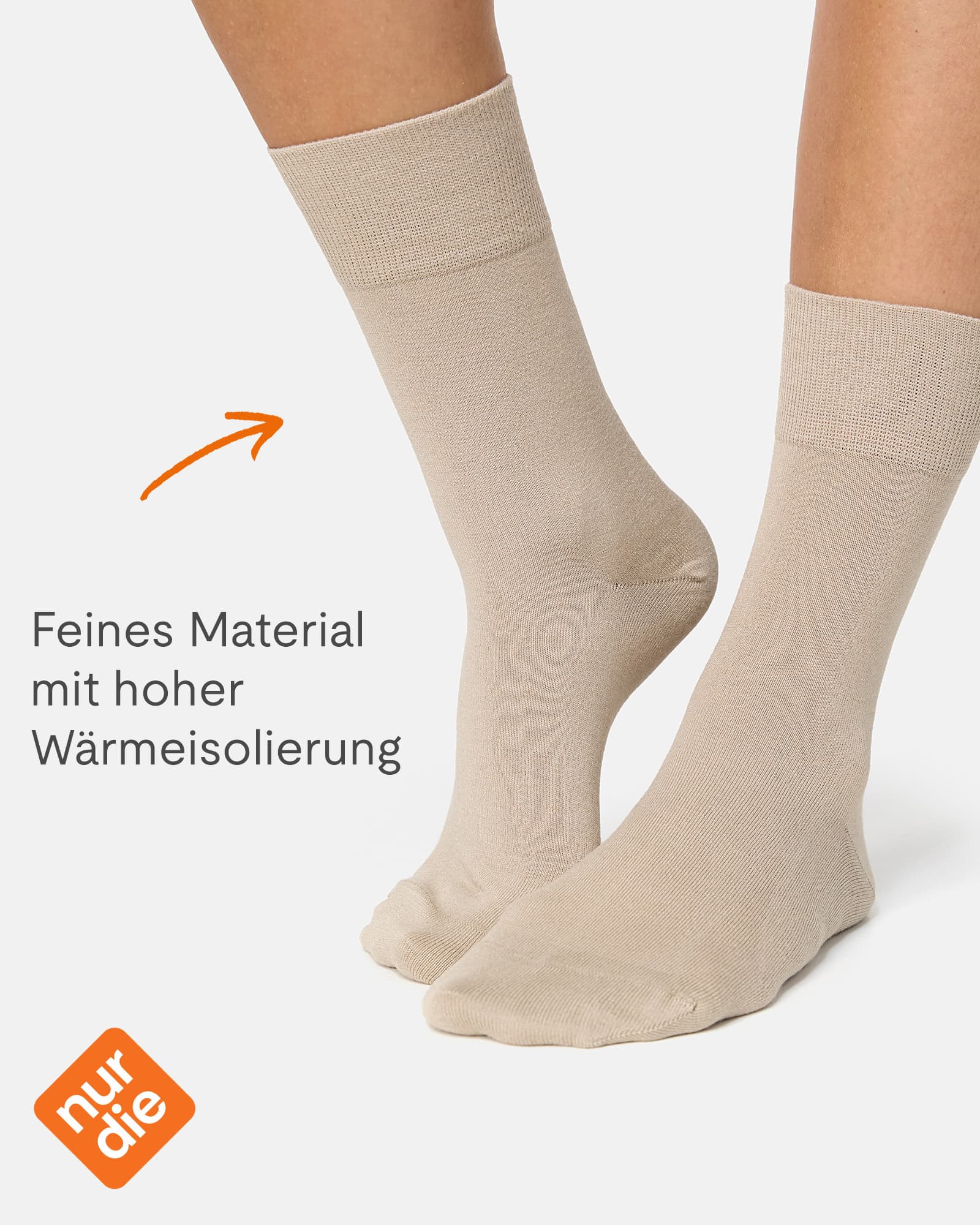 Die Bambus Thermo Socke von NUR DIE bietet die doppelte Wärmeisolierung im Vergleich zu unseren herkömmlichen Bambussocken ohne auf die weichen und farbstabilen Eigenschaften der Viskose aus Bambus-Zellstoff verzichten zu müssen. Durch die Verarbeitung eines feinen Elasthan-Fadens und des angenehmen Abschlussbunds schmiegt sich die Socke besonders weich an den Fuß an. Durch die innovative Thermolite Technologie wird die Körperwärme auf genommen und gespeichert. Die feine Socke trägt außerdem nicht dick auf und leitet die Feuchtigkeit von der Haut weg. Die echt gekettete Spitze verhindert drückende Nähte.