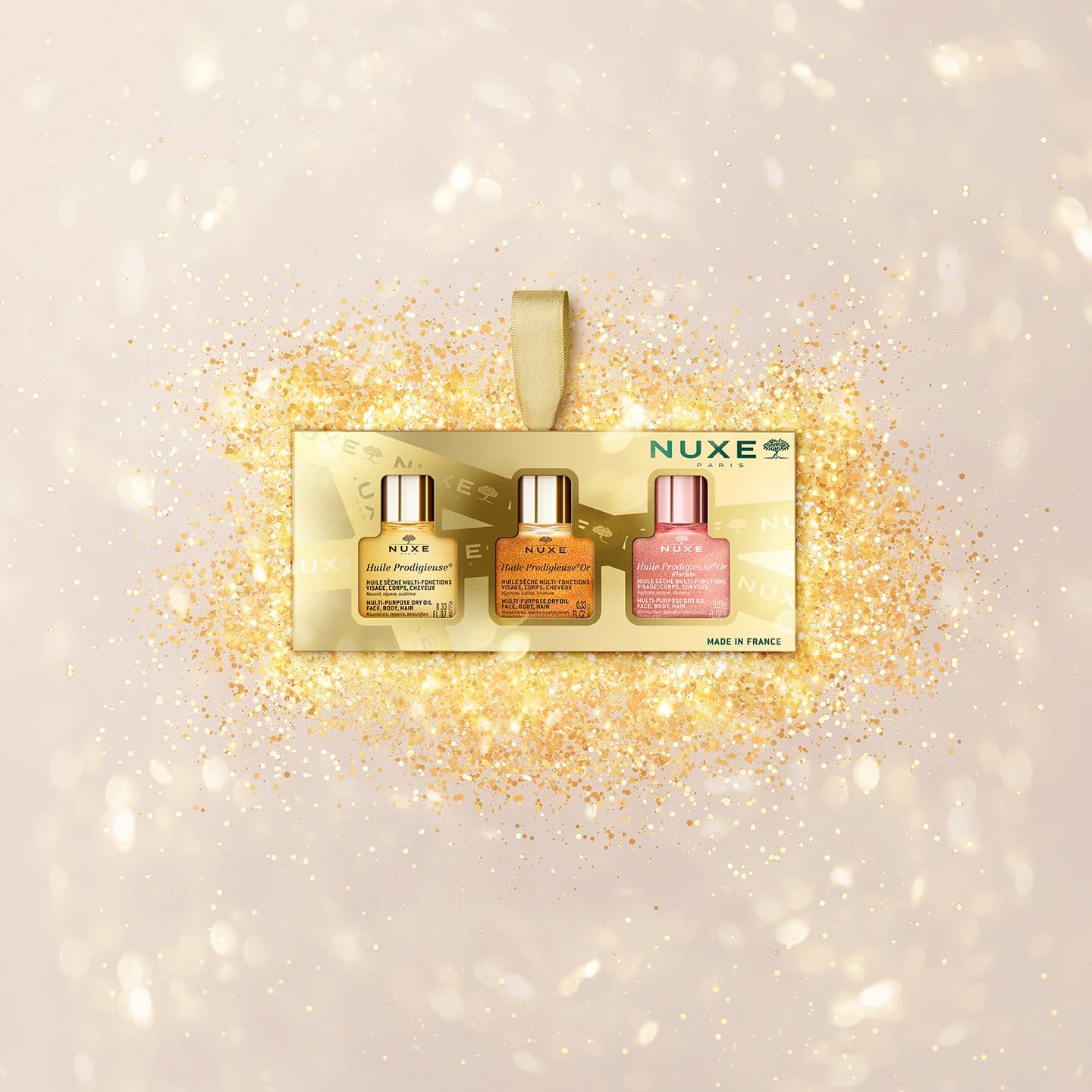 Entdecken Sie das ikonische Huile Prodigieuse® Trockenöl von NUXE im praktischen Entdeckerformat – perfekt zum Kennenlernen und für unterwegs.