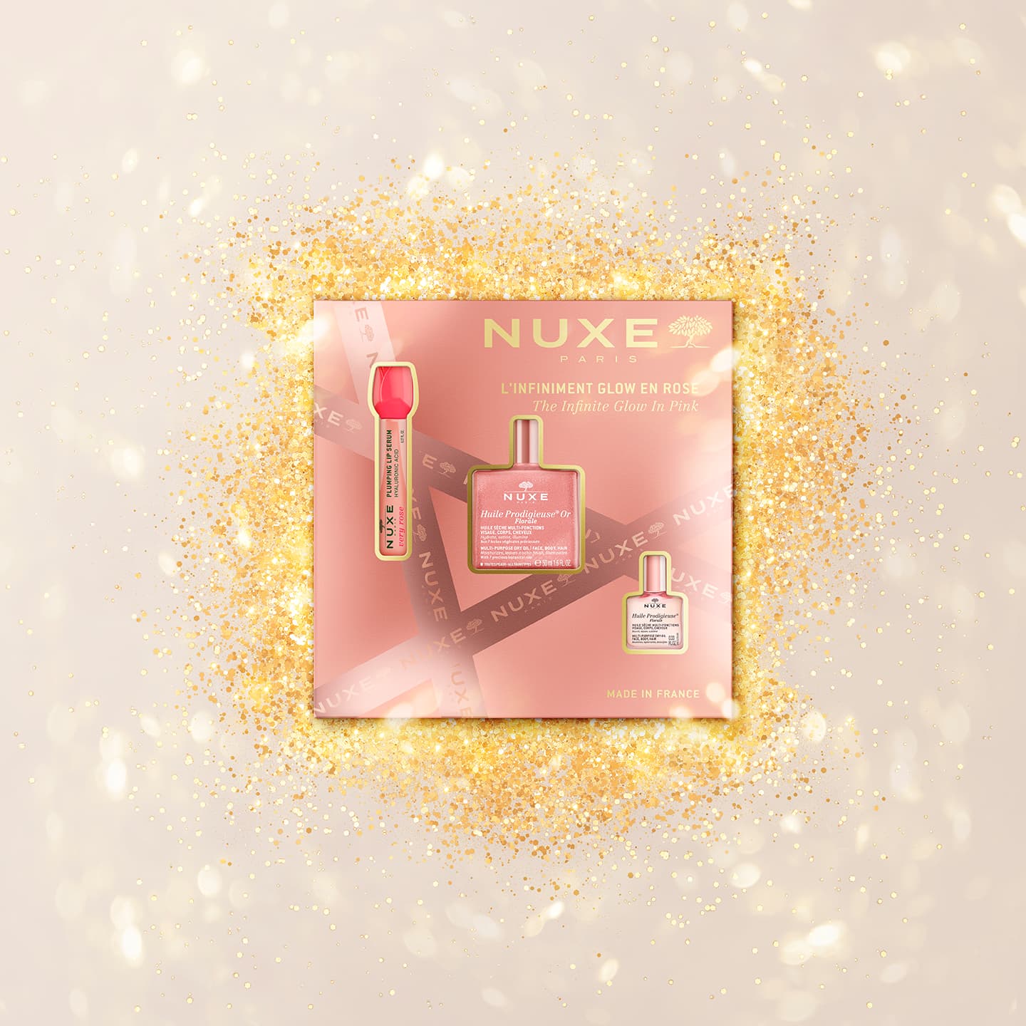 | Anwendungshinweis | Huile Prodigieuse® Or Florale 50 ml Verwenden Sie Huile Prodigieuse® Or Florale das ganze Jahr über, im Winter und im Sommer, auf Gesicht, Körper und Haar. Vor der Anwendung gut schütteln. Mit einem flachen Pinsel oder den Fingerspitzen leicht in die Haut einarbeiten, besonders in den Bereichen, die Licht reflektieren: Wangen, Nasenrücken, Stirn und oberhalb der Augenbrauen. Für den Körper 2 bis 3 Tropfen in den Handflächen verteilen. Wählen Sie die Zonen aus, die Sie hervorheben möchten, und bearbeiten Sie diese glättend mit den Händen. Ein paar Tropfen in Haarlängen und -spitzen einarbeiten für einen wunderschönen Roségoldschimmer. Lassen Sie sich vom zarten, umhüllenden Duft auf Haut und Haaren verzaubern. Huile Prodigieuse Florale 10 ml Verwenden Sie Huile Prodigieuse® das ganze Jahr über, im Winter und Sommer, auf Gesicht, Körper und Haar. Auf dem Gesicht allein anwenden (1 Sprühstoß) oder ein paar Tropfen in den Handflächen mit Ihrer NUXE-Creme mischen. Glättend von der Mitte bis zu den Konturen des Gesichts streichen. Auf dem Körper mit kreisenden Bewegungen einmassieren (Rumpf, Beine usw.), besonders an sehr trockenen Stellen und/oder bei Dehnungsstreifen. Einige Tropfen auf das Haar auftragen und nach Belieben in Längen und Spitzen einarbeiten. Lassen Sie sich vom zarten, umhüllenden Duft auf Haut und Haaren verzaubern. Very Rose Lip Plumping Gloss 8 ml Tragen Sie den Gloss mit dem Applikator auf die Lippen auf. Wiederholen Sie die Anwendung im Laufe des Tages nach Belieben und genießen Sie das angenehme, leicht prickelnde Gefühl. |