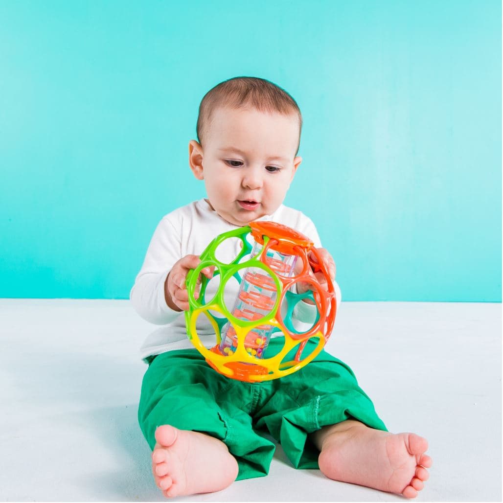 Ob Regen oder Sonnenschein, mit der Regenmacher Rassel ist immer Spielzeit. Dieser leuchtende, farbenfrohe und nahezu unzerstörbare Ball besteht aus 30 Fingerlöchern, die selbst die kleinsten Hände greifen, biegen und schütteln können. Bei jedem Schütteln oder Rollen hört das Baby die beruhigenden Geräusche des Regens, während Sie ein donnerndes Lachen aus dem Wohnzimmer hören werden. Die Regenbogenperlen in der durchsichtigen Rassel drehen und wenden sich mit Babys Hilfe von einem Ende zum anderen und fördern so die Entwicklung der Feinmotorik. Bei so vielen Spielmöglichkeiten werden Sie und Ihr Baby immer viel Spaß haben!Beruhigendes Regengeräusch - kein Regenschirm erforderlichHergestellt aus leicht zu greifendem und nahezu unzerstörbarem Oball-MaterialFlexibles Babyspielzeug für Kinder ab 3 MonatenVermittelt Ursache und Wirkung