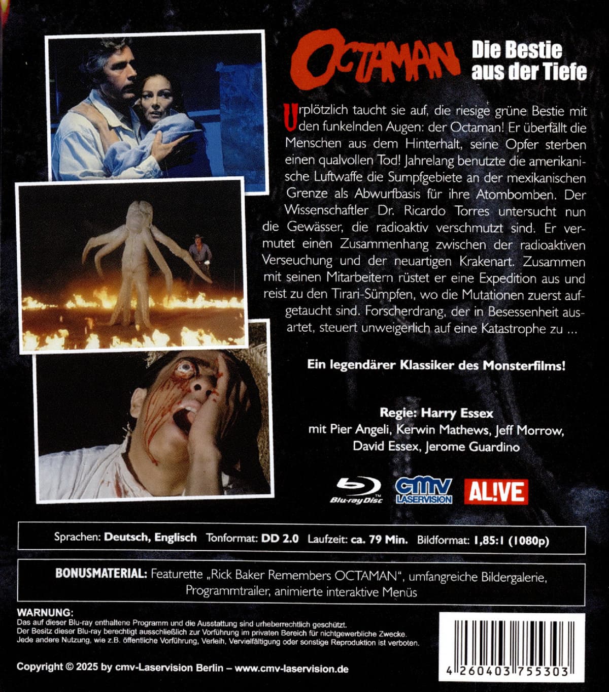 | Zusatzinfos / Bonusmaterial beim Film dabei | Featurette „Rick Baker Remembers OCTAMAN“ ; umfangreiche Bildergalerie ; Programmtrailer ; animierte interaktive Menüs |