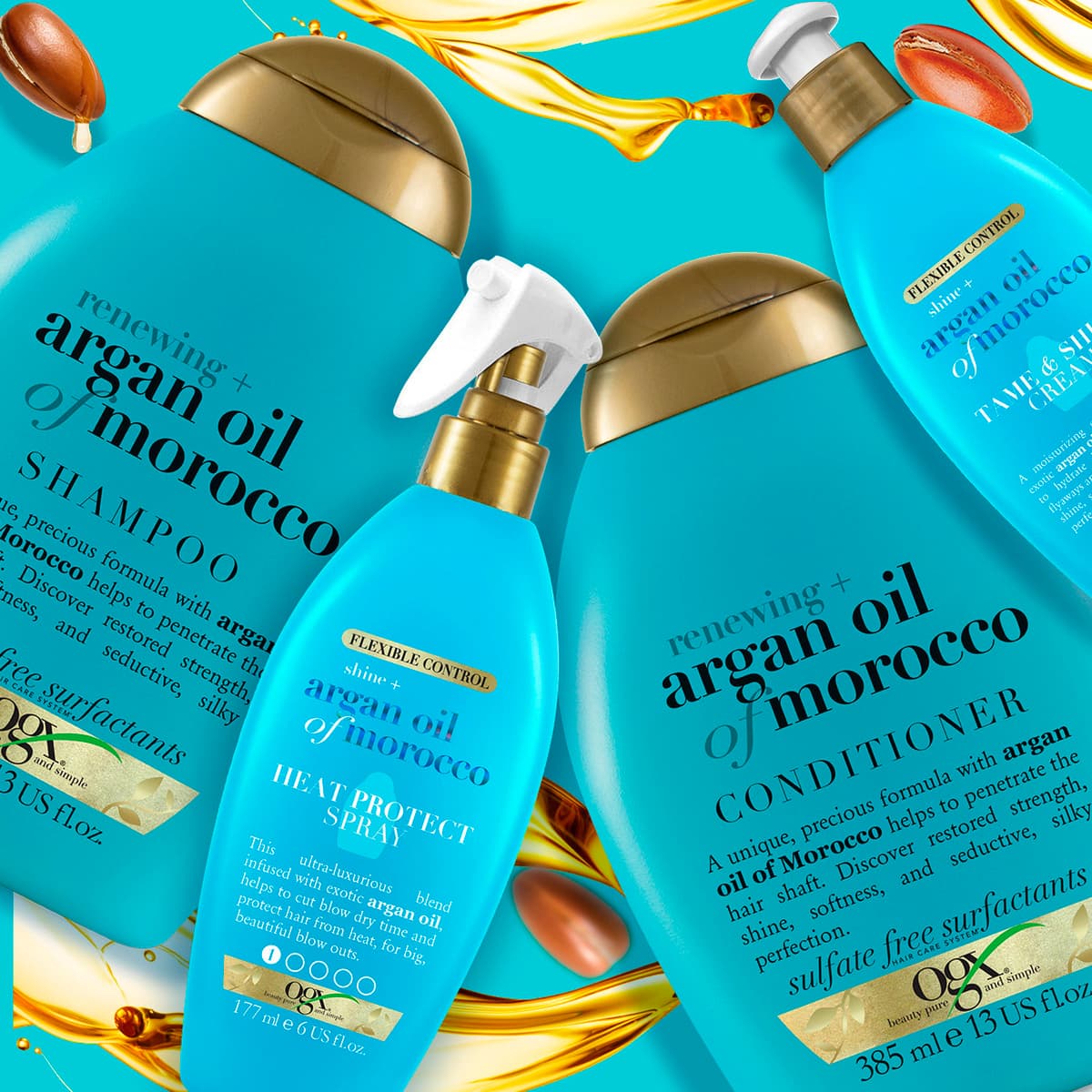 - Pflegendes Hitzeschutzspray für die Haare – Das glanzsteigernde OGX Argan Oil of Morroco Heat Protection Spray mit marokkanischem Arganöl verleiht dem Haar seidigen Glanz und verkürzt die Föhndauer.