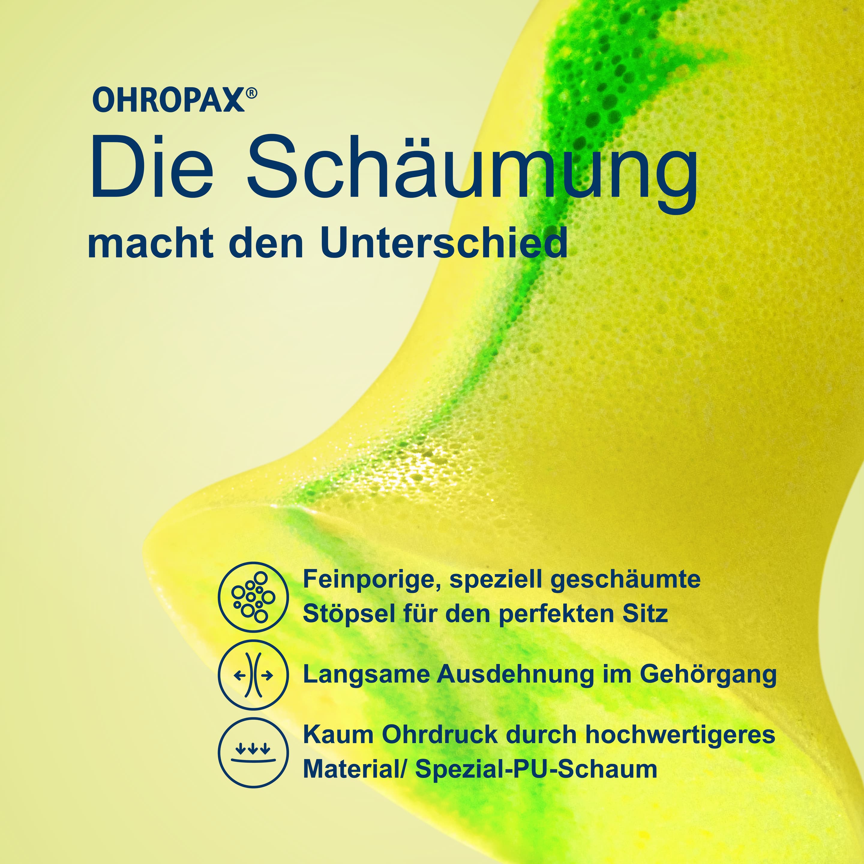 - · Spezielle Schaumstoff-Formel, deshalb kaum Ohrdruck