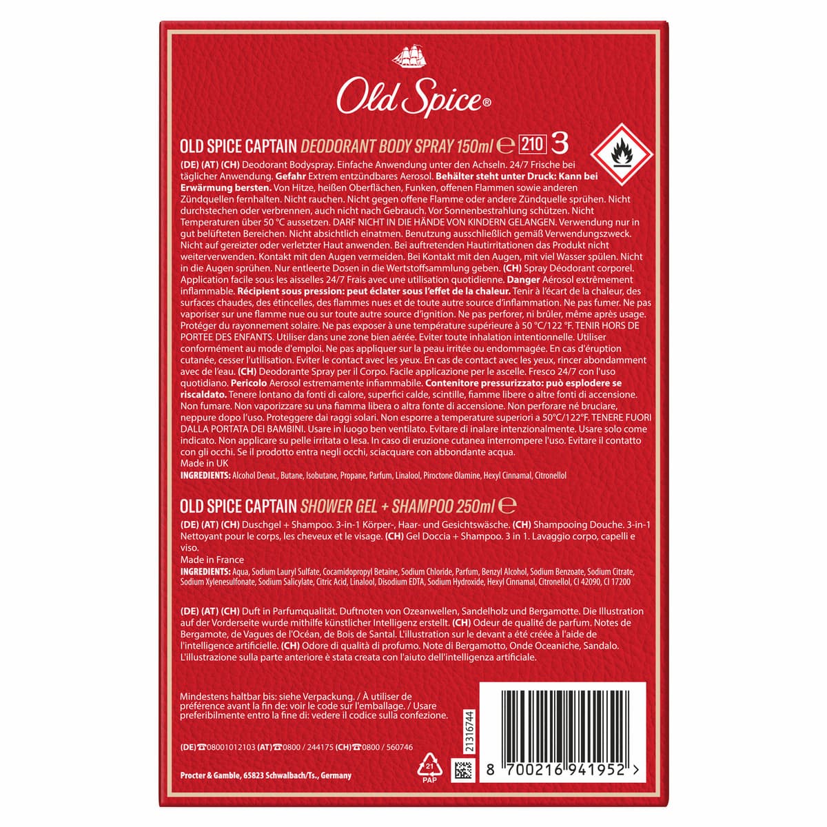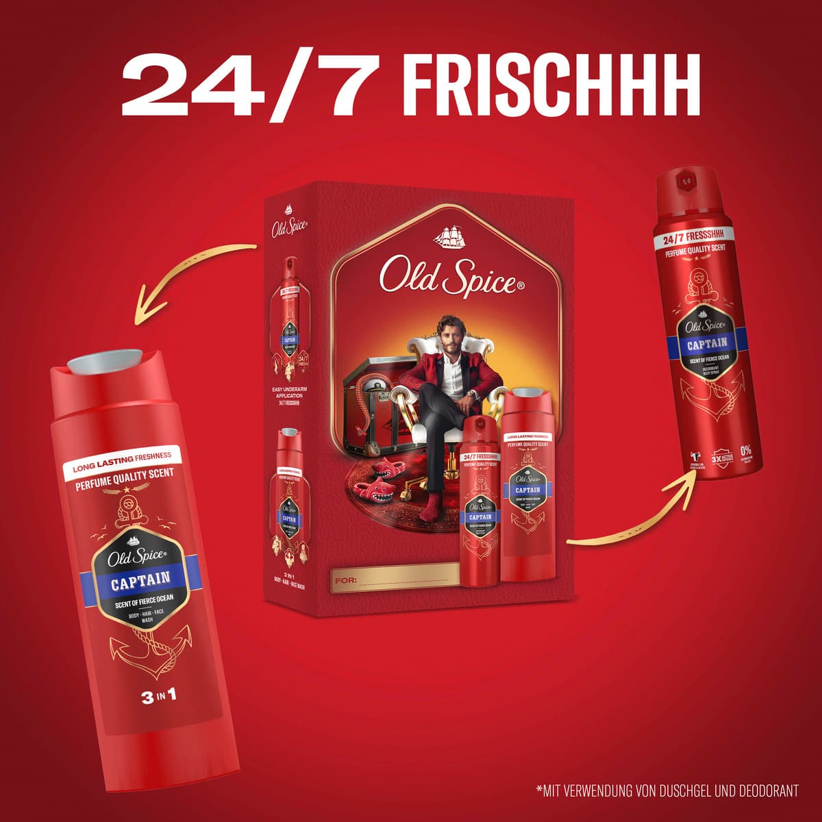 - DAS GESCHENKSET ENTHÄLT ein Captain Deospray (150 ml) und ein Duschgel (250 ml)