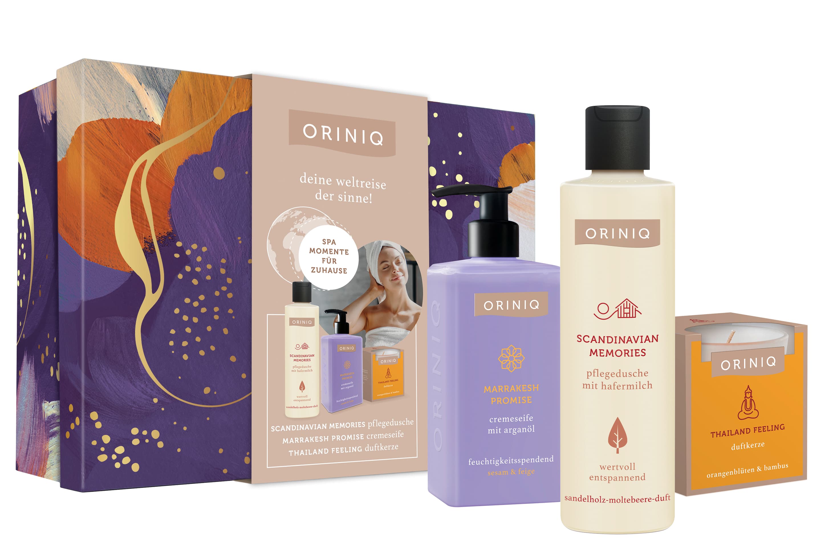 Das ORINIQ Geschenkset Weltreise der Sinne lädt zu einer kleinen Wellness-Auszeit in den eigenen vier Wänden ein.