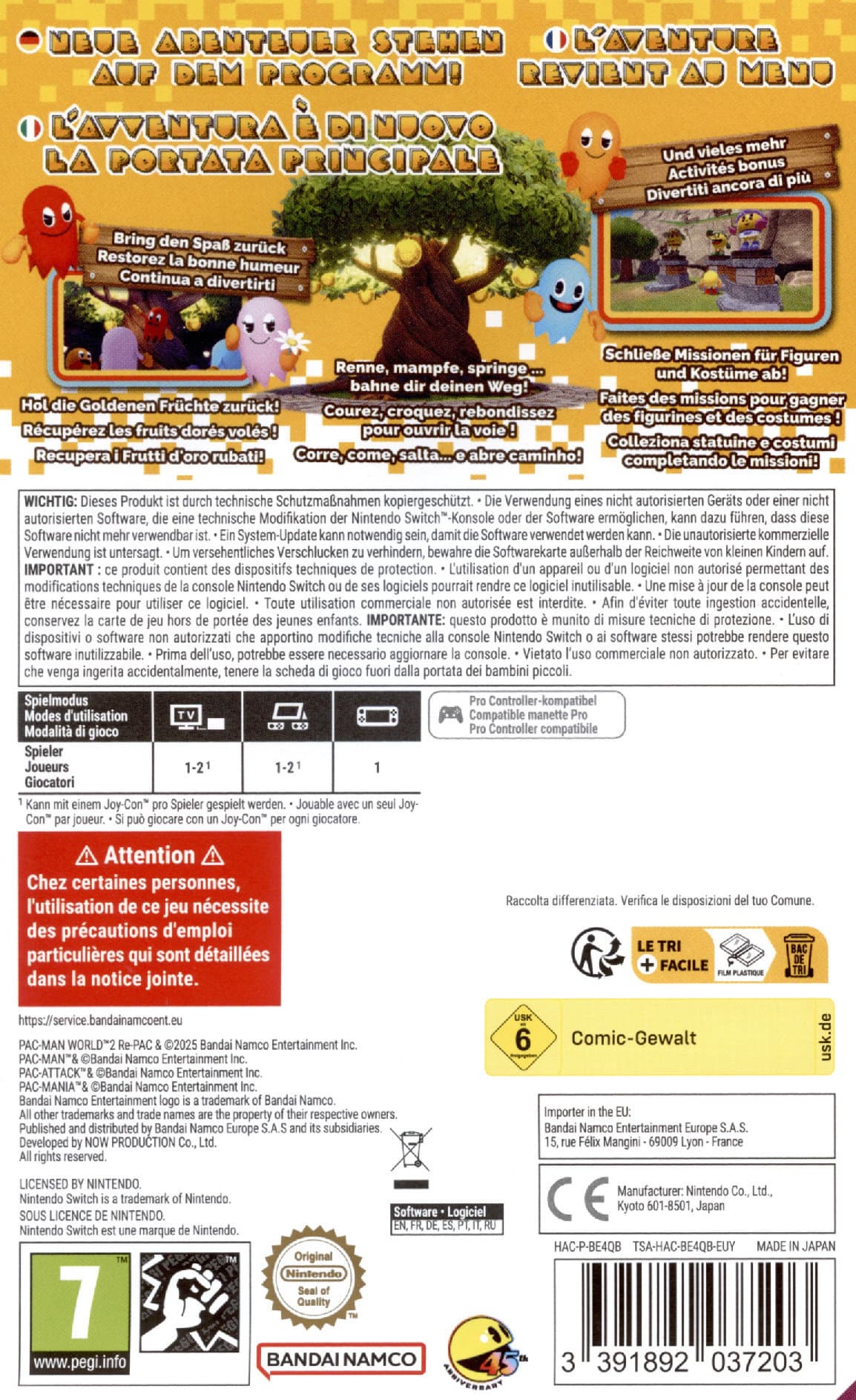 In PAC-MAN WIRLD 2 Re-PAC stehen neue Abenteuer an! PAC-MAN WORLD 2 Re-PAC modernisiert, aktualisiert und verbessert das beliebte 3D-Plattform-Abenteuer in nahezu jeder Hinsicht! Erkunde PAC-LAND, um die Goldene Frucht zurückzuerobern und den Geistern und ihrem heimtückischen Boss Spooky das Handwerk zu legen! Gewinne die goldene Frucht zurück Die Geister haben sich im PAC-Dorf eingeschlichen und die Goldene Frucht gestohlen. Dadurch haben sie zu allem Überfluss auch noch den allmächtigen Geisterkönig Spooky befreit! PAC-MAN muss durch PAC-LAND reisen, um die Goldene Frucht zurückzuholen und dem heimtückischen Spooky das Handwerk zu legen! Eine Welt voller Spaß Renne, mampfe, springe und mehr, um die Herausforderungen von PAC-LAND zu meistern und seinen Zauber zu genießen – vom Trampolinspringen in die Baumkronen über Schlittschuhlaufen in den Verschneiten Bergen bis hin zum Schießen mit dem Pac-U-Boot in den Tiefen des Ozeans. Mach Megarollen in den Paradieswiesen, flattere über Lava im Vulkan und beweise dich mit Pac-Punkt-Angriffen auf der Geisterinsel! PAC-MAN ist bereit für die Action! Ein Remake für alle PAC-Spieler! Aktualisierte Grafik, umfangreiche Level, das Pac-Dorf, verbesserte Spielkomfortfunktionen und Sprachausgabe – das Lieblingsspiel der Fans hat seinen ursprünglichen Charakter beibehalten – und doch rundum erneuert. Und Re-PAC bietet sogar noch mehr: neue Aktionen für PAC-MAN, neue Bosskämpfe, Charaktere, Sammlerstücke, Anpassungsmöglichkeiten und sogar einen 2-Spieler-Modus!