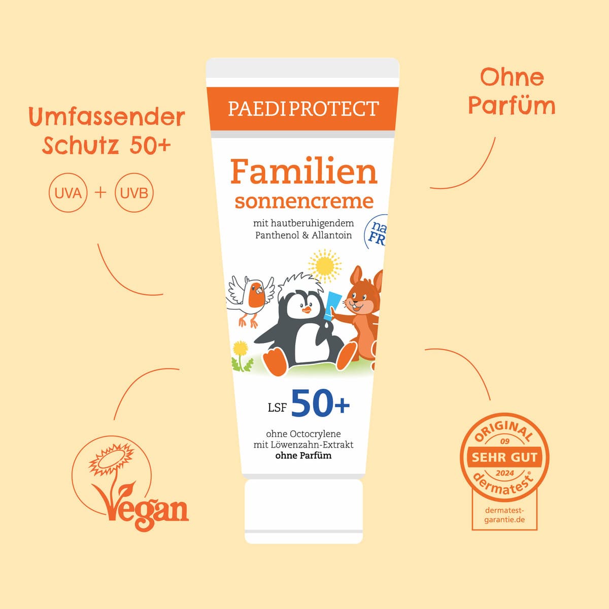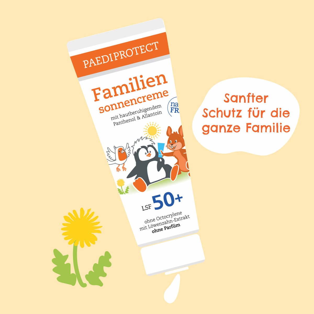 Die PAEDIPROTECT Familiensonnencreme LSF 50+ in der neuen Familiengröße (200ml) ist der ideale Begleiter für den nächsten Familienurlaub. Die Creme lässt sich einfach verteilen und hinterlässt keinen