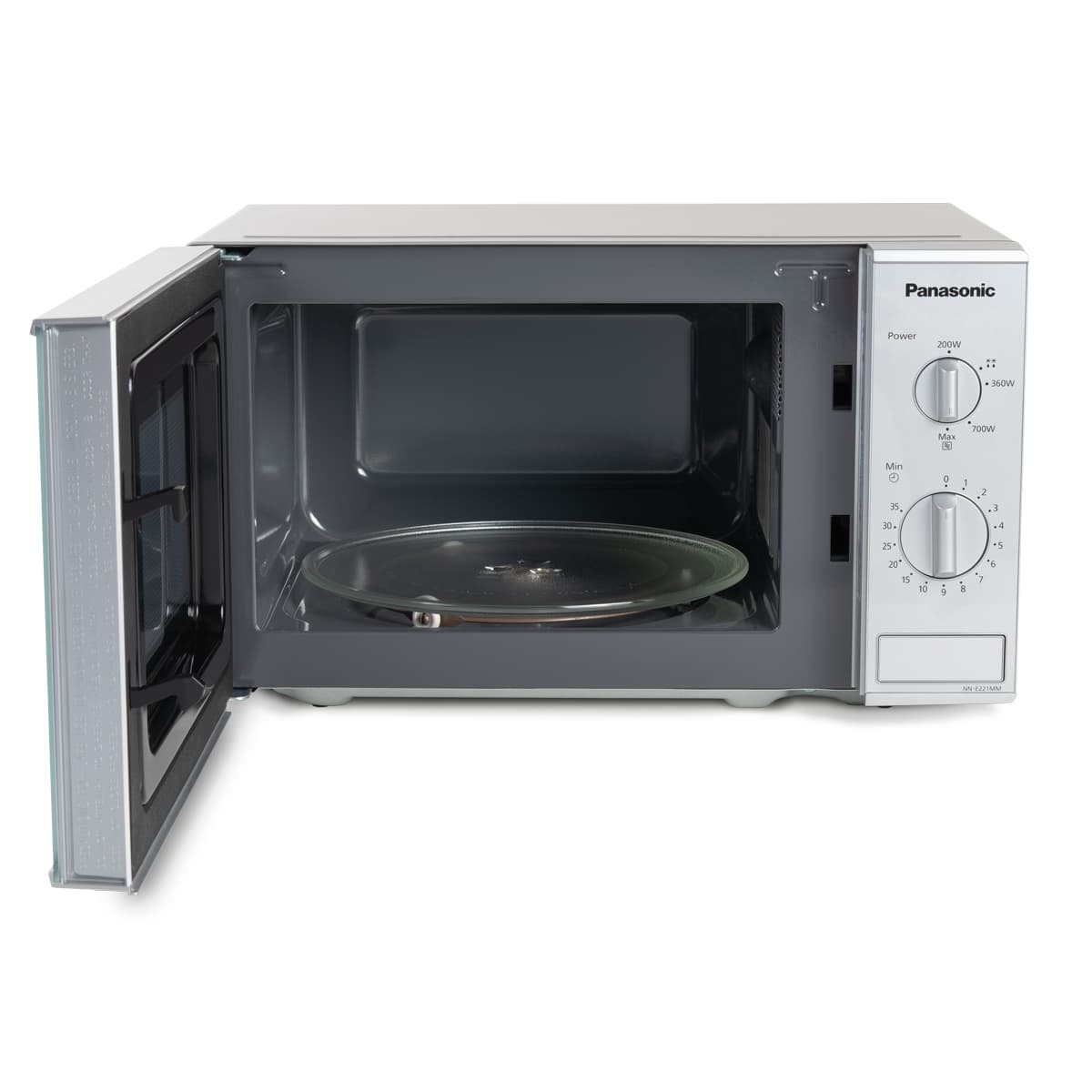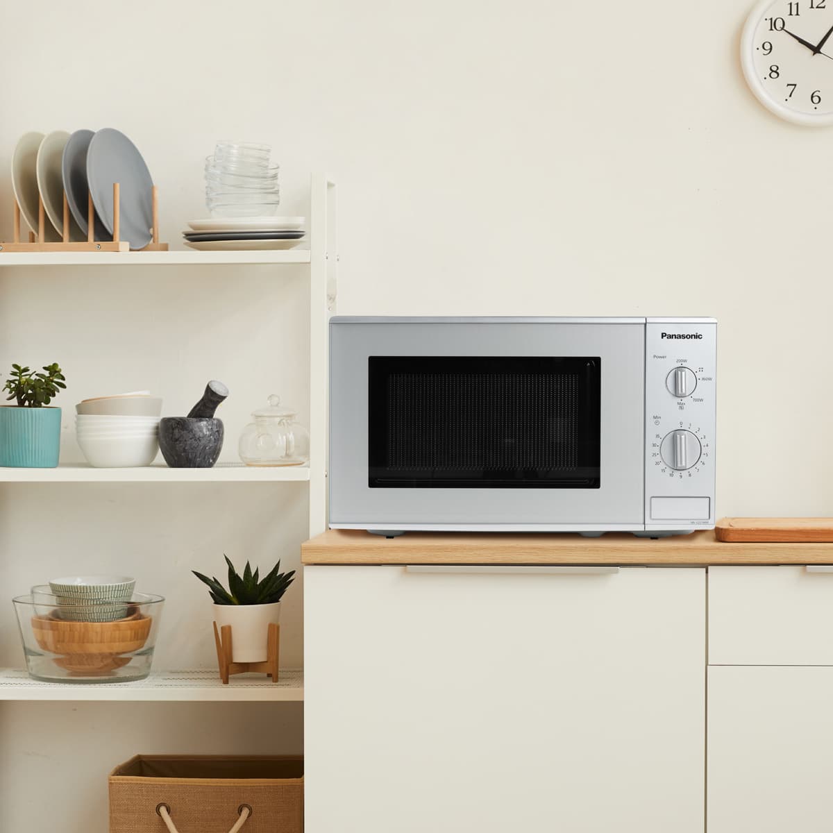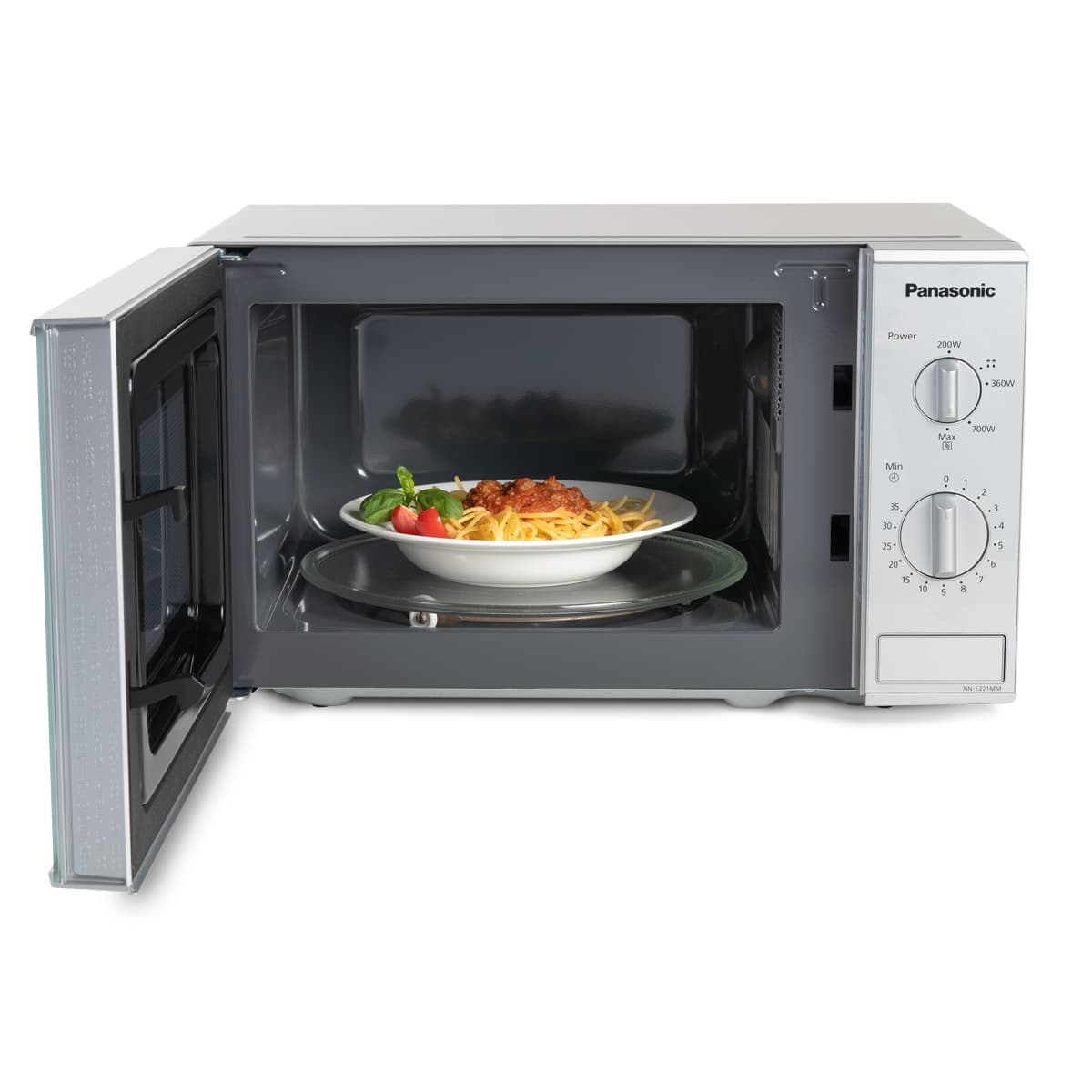 Mit der Panasonic Mikrowelle NN-SM21 genießen Sie leckere Gerichte im Handumdrehen. Durch die beiden Drehregler für Mikrowellenleistung und Garzeit ist das Gerät besonders leicht zu bedienen. Die fünf Mikrowellenstufen von 200 Watt bis 800 Watt ermöglichen viele praktische Garmethoden: Auftauen, warmhalten und Garen innerhalb weniger Minuten. Und dank der leicht zu reinigenden Beschichtung das Garraums ist die Mikrowelle nach der Verwendung blitzschnell wieder sauber.