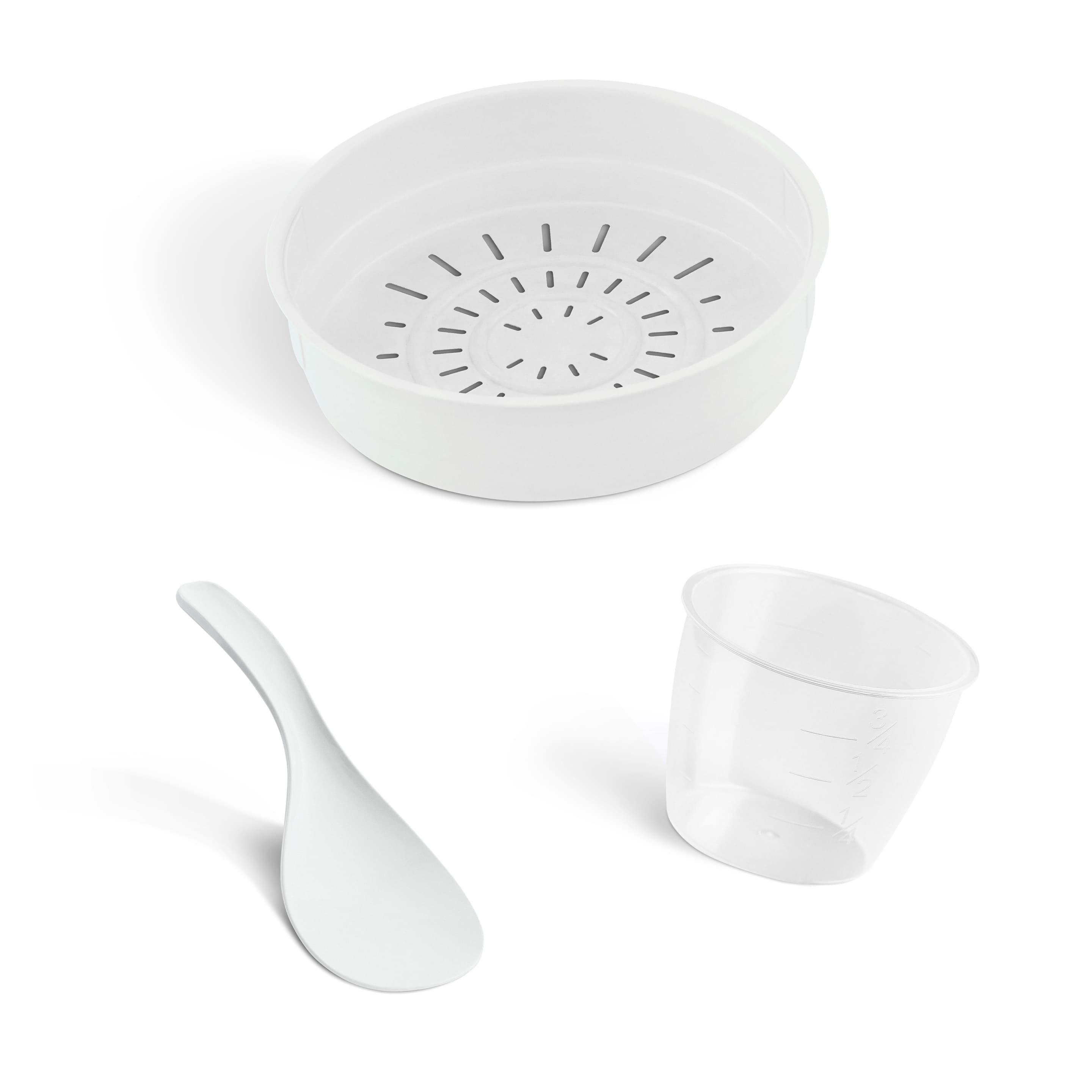 Mit dem Reiskocher SR-DA152 können Sie mühelos mehrere Aufgaben simultan erledigen. Dank des Dampfkorbes können gleichzeitig Reis gekocht und Gemüse oder Fisch gedämpft werden. Der Reiskocher hält den Reis nach dem Kochen automatisch bis zu 5 Stunden warm. Bereiten Sie Ihre Mahlzeiten morgens vor und lassen Sie sie mithilfe des Timers zur gewünschten Zeit zubereiten. Einfache und präzise Bedienung dank der direkt auf dem Kochtopf aufgedruckten Anzeige der Wassermenge und individuellen Dosierung je nach Reissorte. Der Kochtopf ist spülmaschinenfest, antihaftbeschichtet und BPA/PFAS frei. Die Beschichtung aus Keramik sorgt für eine hervorragende Wärmeleitfähigkeit und gewährleistet ein schnelles und effektives Kochen. Der Reiskocher wird mit einer Schnellstartanleitung und Rezeptideen geliefert, die Ihnen das Kochen noch einfacher machen.