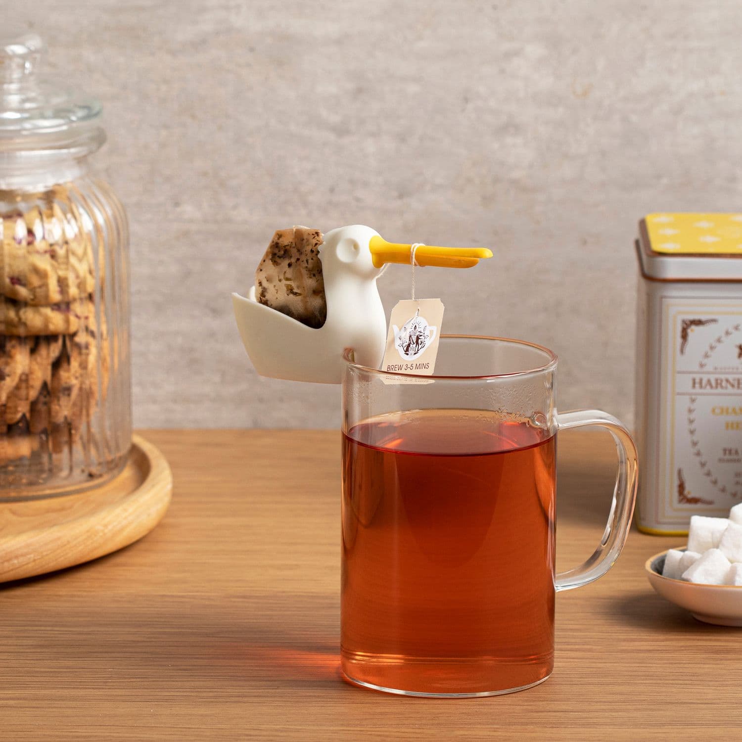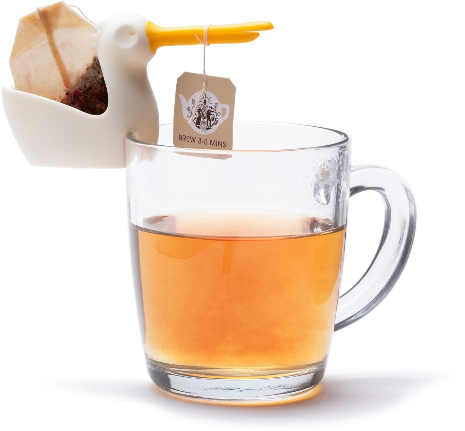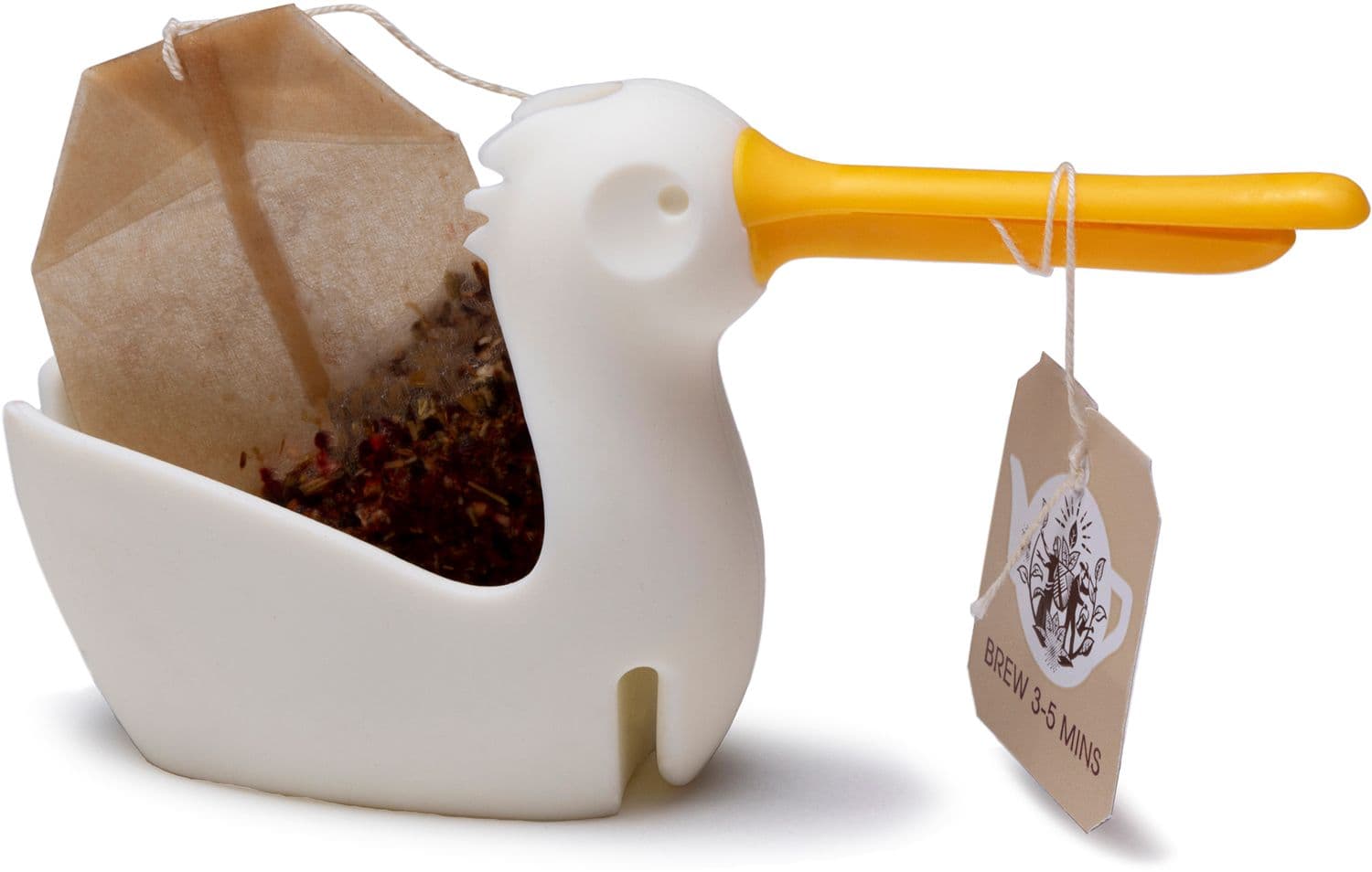 Lustiger Teebeutelhalter in Pelican-Form. Hänge den Teebeutelhalter am Tassenrand ein und wickle die Schnur des Teebeutels um den Schnabel. Jetzt kannst du den Tee entspannt ziehen lassen. Der Pelikankörper bietet zudem Platz für den Teebeutel oder einen kleinen Cookie.