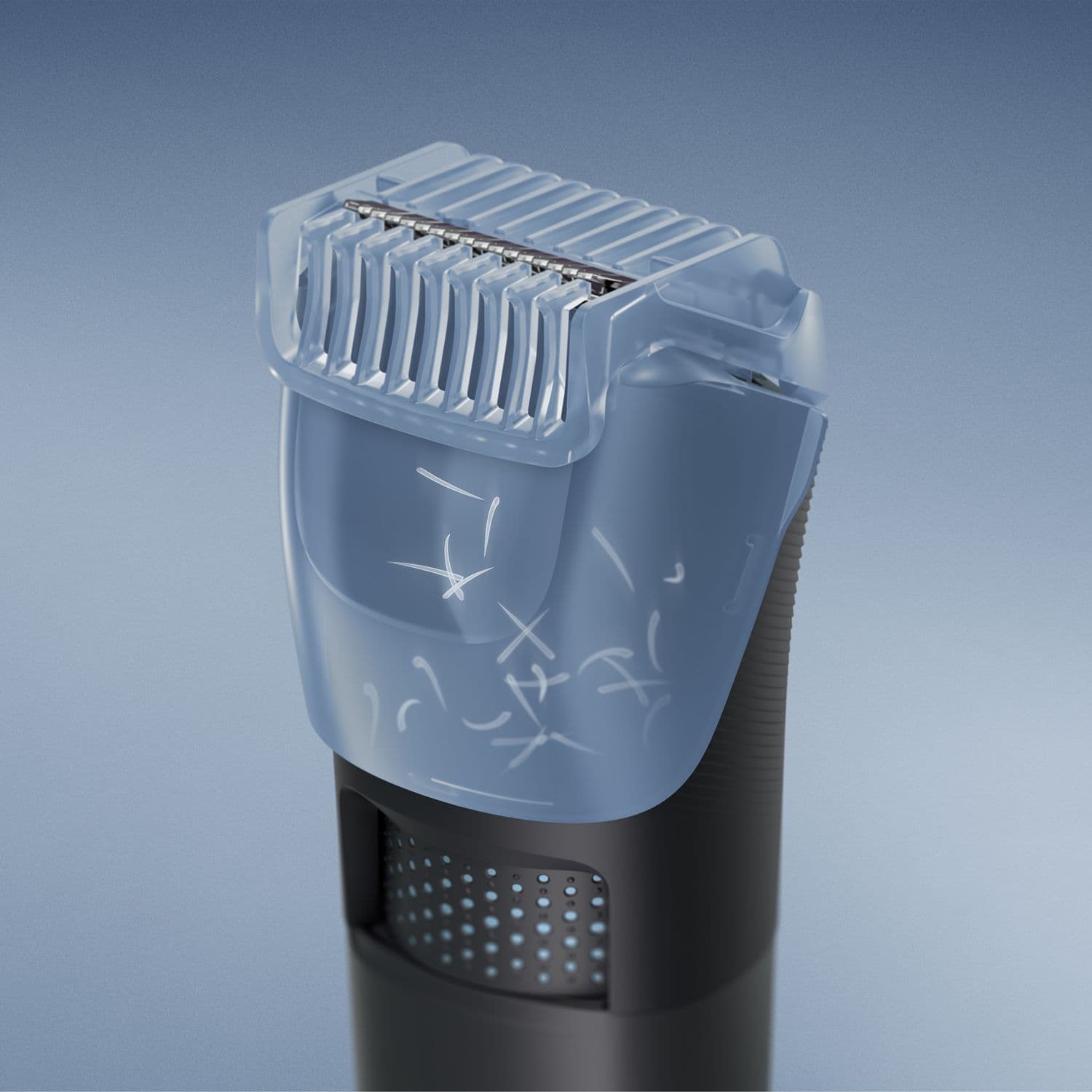 Der Philips Bartschneider Serie 5000 BT5780/15 wurde entwickelt, um präzises und komfortables Bartstyling mit möglichst geringem Aufwand zu ermöglichen. Selbstschärfende Metallklingen bleiben dauerhaft scharf und sorgen für ein gleichmäßiges Trimmergebnis, ohne dass Klingenöl benötigt wird. Mit insgesamt 40 Längeneinstellungen in feinen 0,2-mm-Schritten von 0,4 bis 20 mm lässt sich der Bart individuell anpassen und präzise formen – unabhängig vom Barttyp. Die integrierte BeardSense-Technologie analysiert die Bartdichte bis zu 125-mal pro Sekunde und passt die Motorleistung automatisch an, wodurch auch bei dichtem oder widerspenstigem Haar gleichmäßige Ergebnisse erzielt werden. Der Lift &Trim-Kamm richtet flach anliegende Haare auf und führt sie direkt zur Klinge, sodass das Trimmen effizienter und gleichmäßiger erfolgt. Gleichzeitig sammelt der integrierte Hair Collector bis zu 80 % der abgeschnittenen Haare und reduziert damit den Reinigungsaufwand nach der Anwendung. Der Bartschneider bietet eine Akkulaufzeit von bis zu 100 Minuten und kann dank Schnellladefunktion innerhalb von nur 5 Minuten für eine Anwendung aufgeladen werden. Eine praktische Ladestation sorgt zusätzlich für komfortables Aufladen und Aufbewahren – sowohl zu Hause als auch auf Reisen. Das Gerät ist vollständig wasserdicht und lässt sich einfach unter fließendem Wasser reinigen. Der ergonomisch geformte Griff sorgt dabei für eine sichere Handhabung und hohen Komfort bei jeder Anwendung.