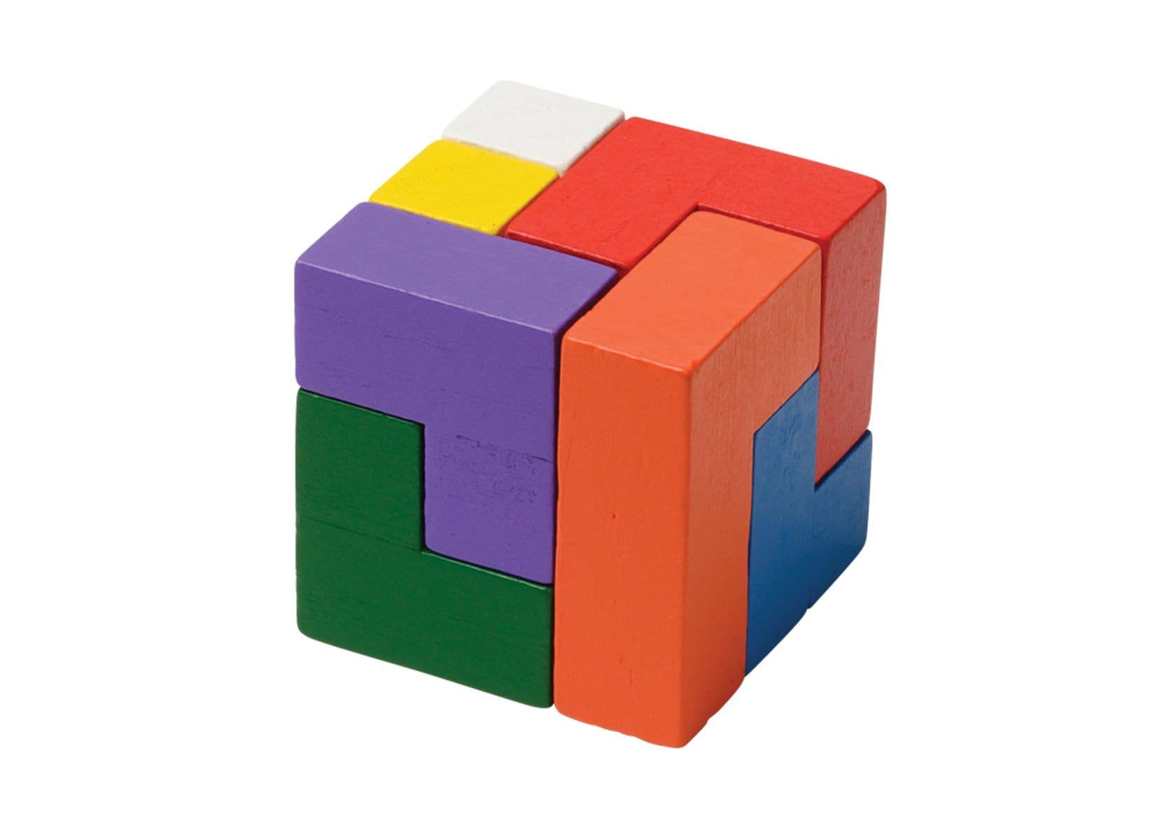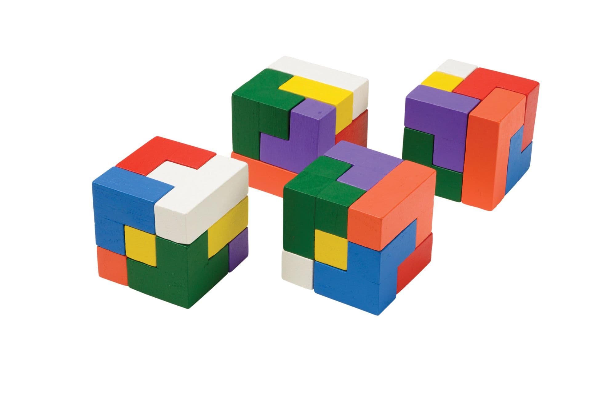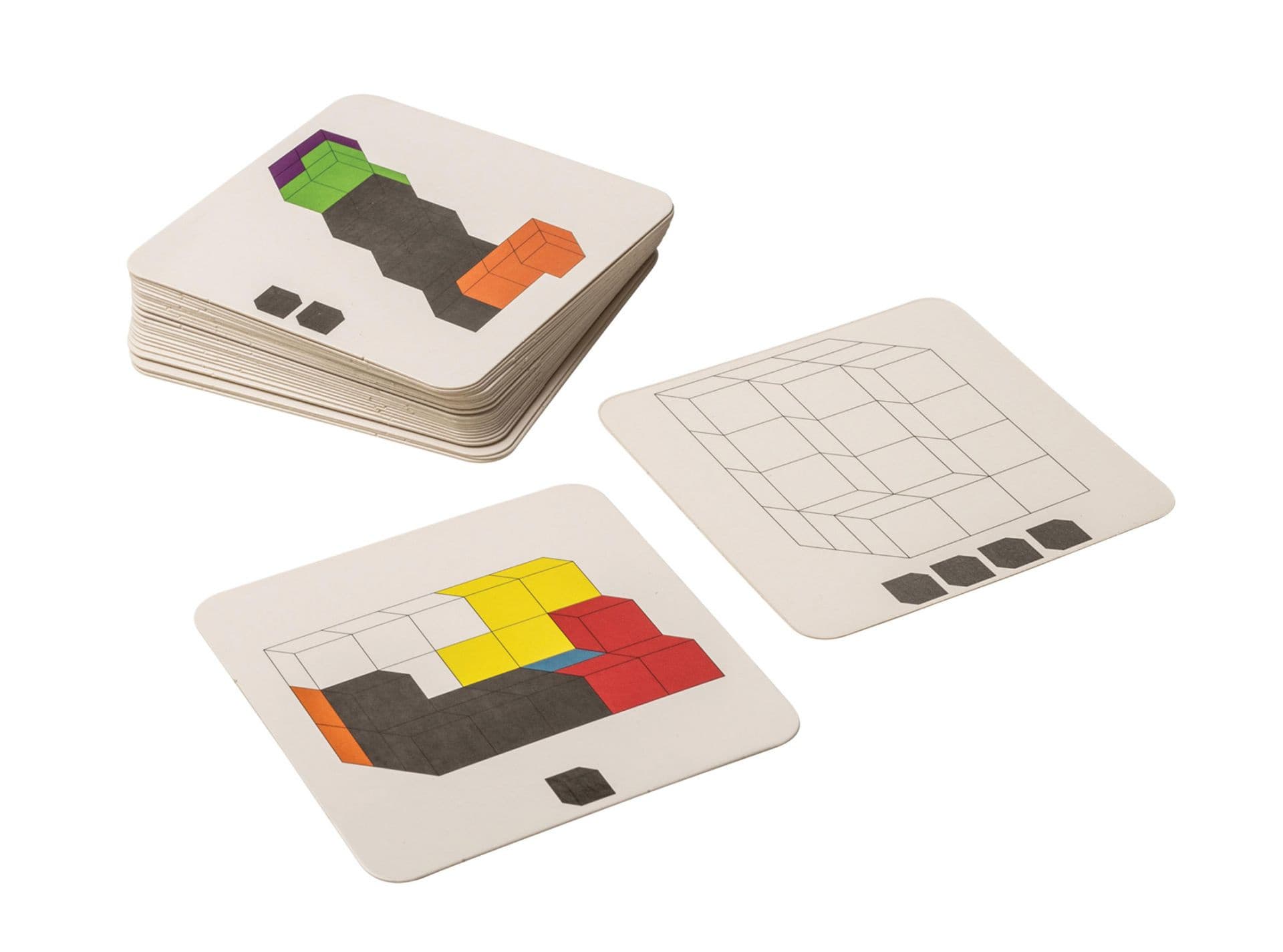 Inhalt: 4 Soma Würfel mit jeweils 7 Puzzleteile, 27 Aufgabenkarten