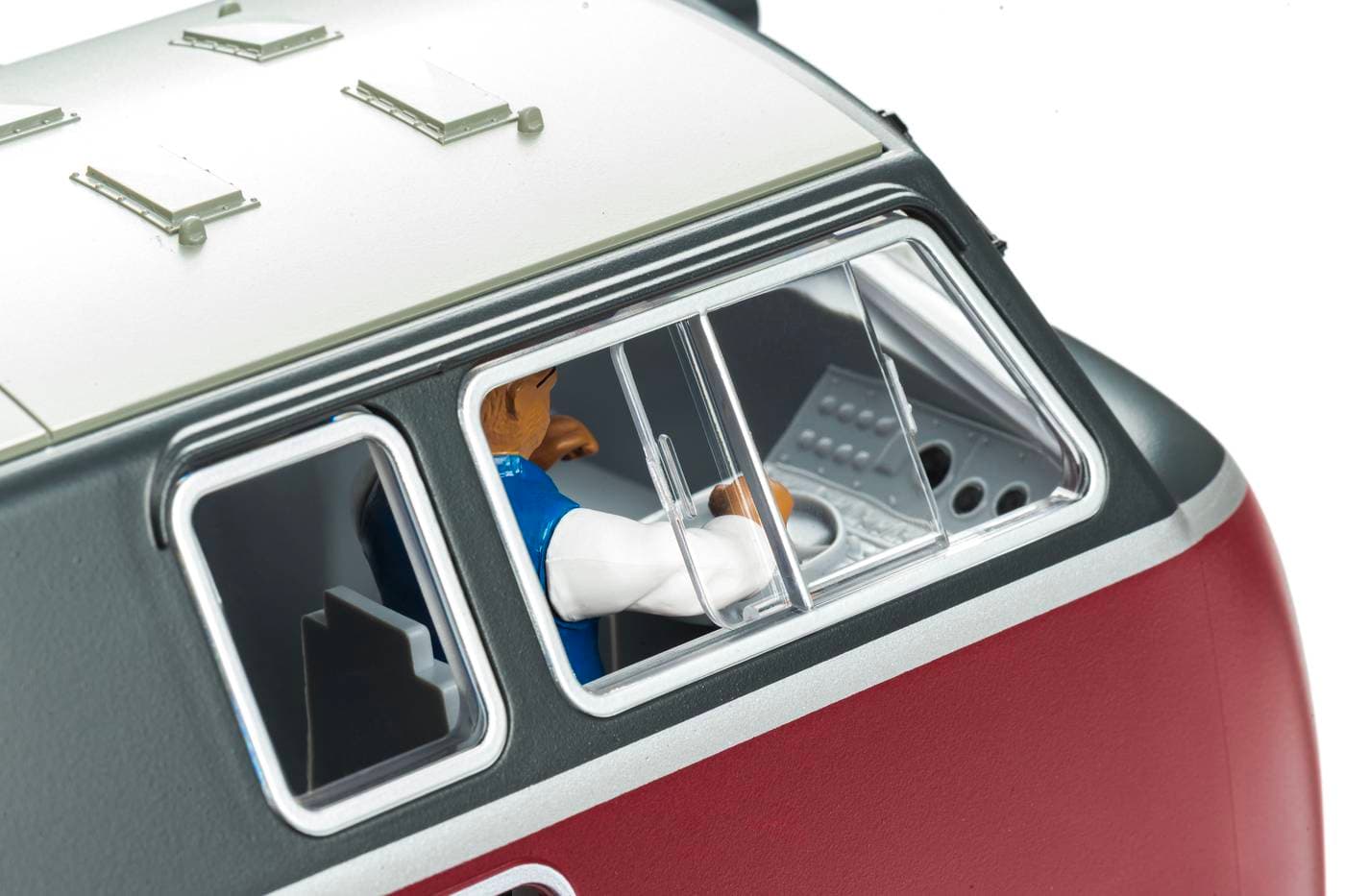 Neuheit 2025: Mit der V 200.1 in der Ausführung als BR 221 bringt PIKO eine der wohl populärsten Diesellokomotiven der Bundesbahn auf die Spur G Gleise. Das liebevoll konstruierte Modell überzeugt durch die gelungene Umsetzung der Proportionen der universell eingesetzten Loks und wartet hierbei mit verschiedenen Highlights auf: Die Türen und Fenster des Führerstandes lassen sich öffnen. In der Digitalversion verfügt das Modell ab Werk über einen passenden PSD XP Sound-Decoder, über welchen sich Beleuchtungen im Führerstand, Maschinenraum und Fahrwerksbereich schalten lassen. Zahlreiche Soundfunktionen sowie zwei gepulste Verdampfer an den Abgasauslässen und der Heizkesseldampf machen den Modellbahnbetrieb noch realistischer. Egal ob vor Schnellzügen oder im schweren Güterzugverkehr - die BR 221 von PIKO macht immer eine sehr gute Figur und überzeugt dank erprobter Antriebstechnologie durch ausgezeichnete Fahreigenschaften.