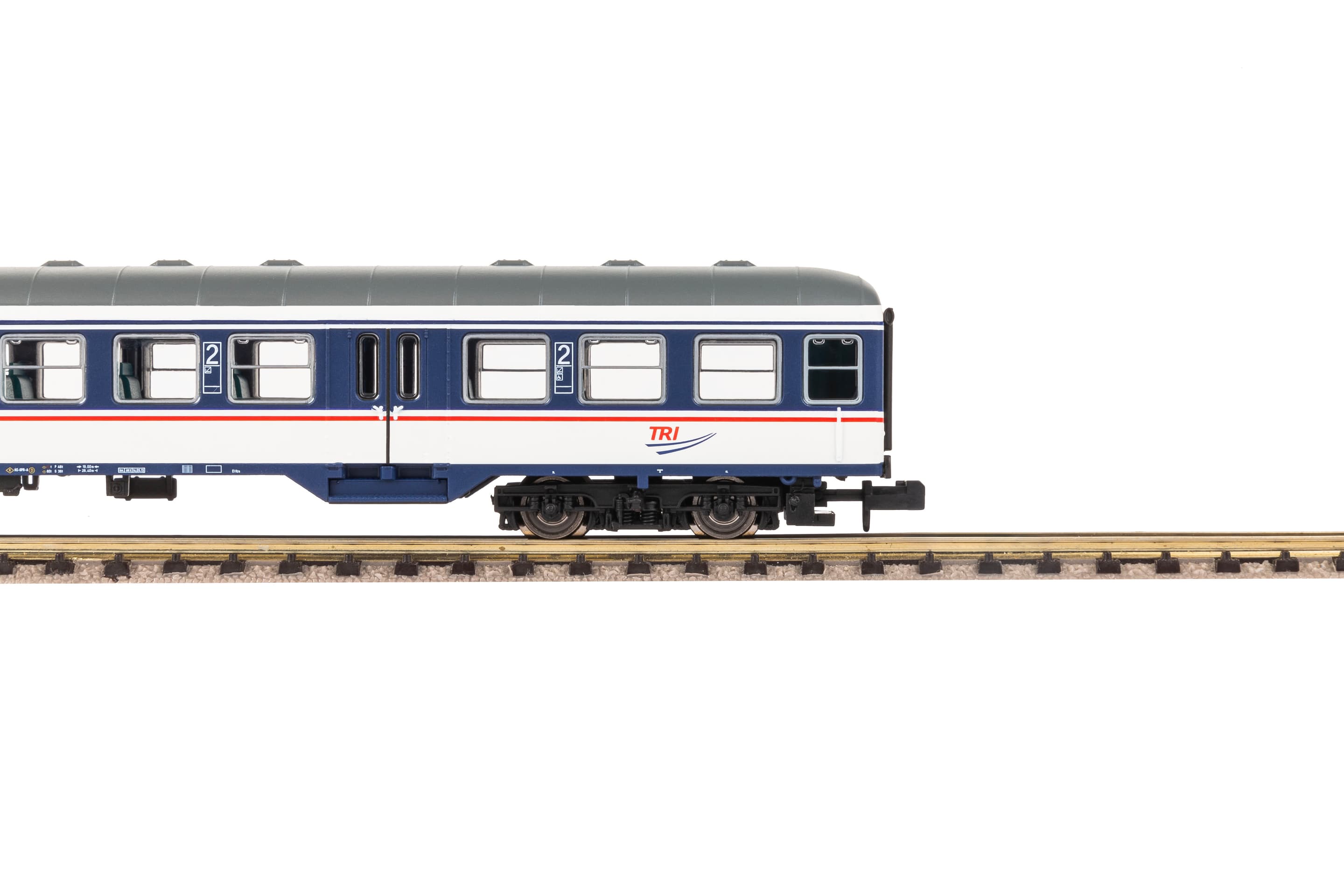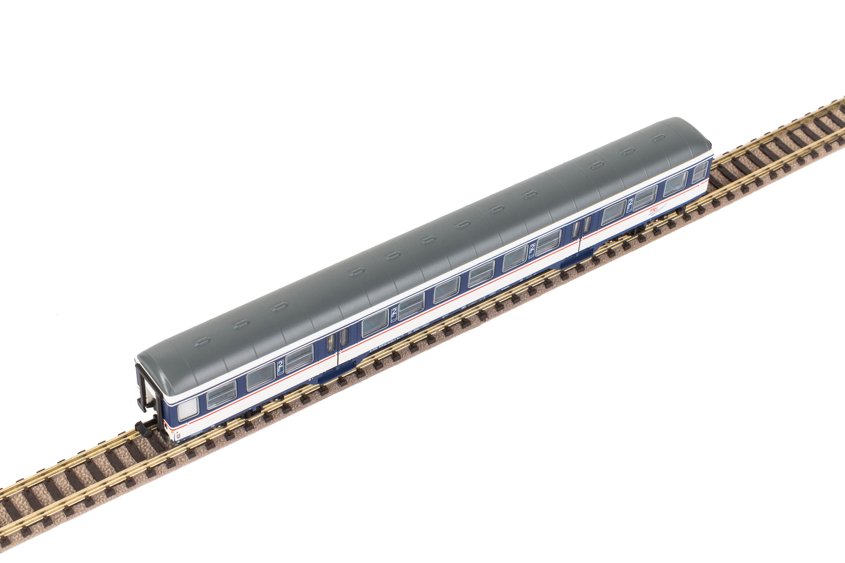 Neuheit 2024: Personenwagen 2. Klasse im Design der TRI in Epoche VI. Die TRI Train Rental GmbH ist ein deutsches Eisenbahnverkehrsunternehmen, das sich auf den Erhalt von historischen Fahrzeugen spezialisiert hat. Darüber hinaus hat sich das Unternehmen zu einem Dienstleister für Sonder-, Ersatz- und Notfalldienste entwickelt. Die aufgearbeiteten Fahrzeuge werden für den regulären Personenverkehr zur Verfügung gestellt. Neben der Optik überzeugen das Modell auch durch die hervorragenden Laufeigenschaften und ist für die unkomplizierte Nachrüstung einer Innenbeleuchtung vorbereitet.