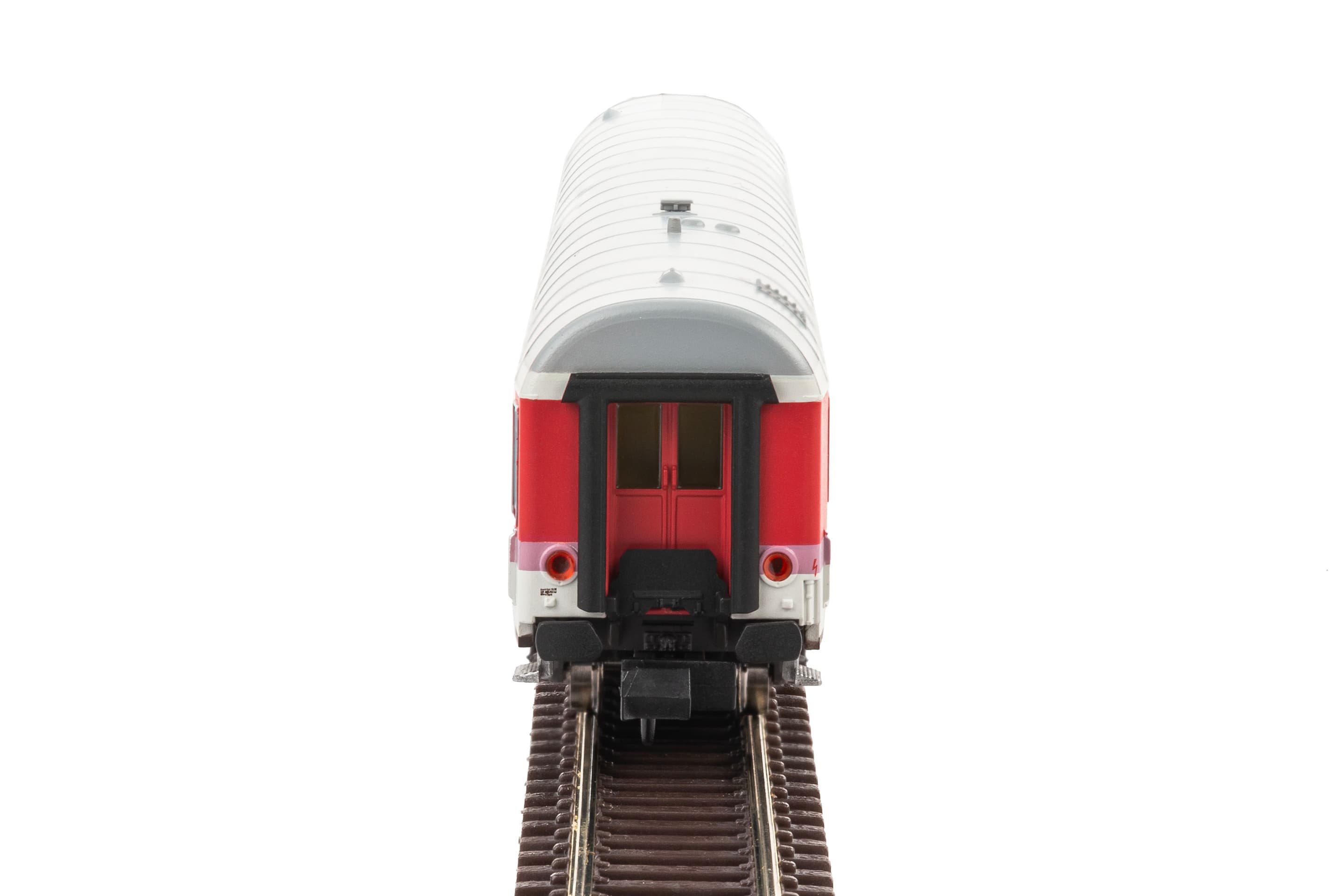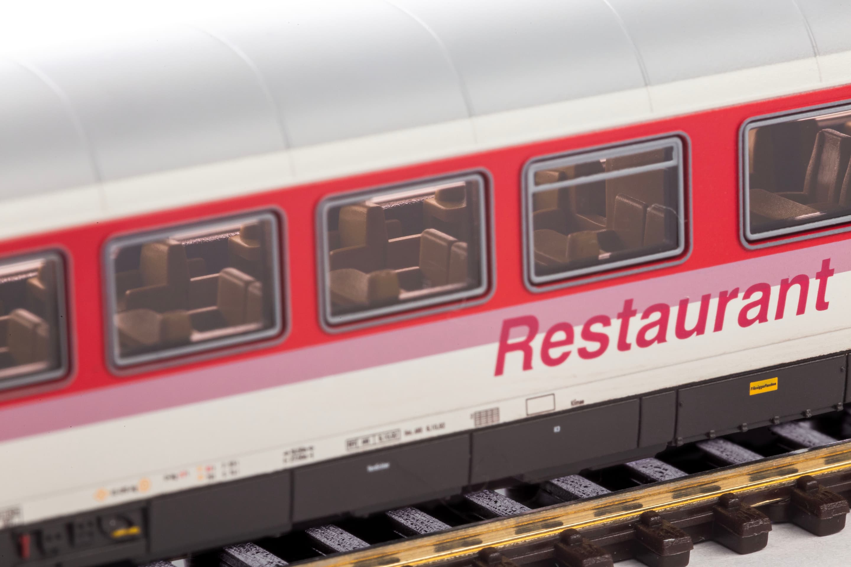 Neuheit 2024: Der IC-Speisewagen in Produktfarben der DB in Epoche IV. Das wegweisende Konzept des IC `79 wurde zu Beginn des Sommerfahrplans 1979 von der Bundesbahn mit dem bekannten Slogan „Jede Stunde, jede Klasse“ eingeführt. Dieser neue Weg wurde erforderlich, da die rein erstklassigen Intercitys zu diesem Zeitpunkt durch den anhaltenden Fahrgastschwund kaum noch wirtschaftlich zu betreiben waren. Mit der Einführung der zweiten Wagenklasse wurde gleichzeitig der Takt auf einen Stundenrhythmus angehoben. Angestrebte Verkürzungen der Reisezeiten erfolgten durch den Ausbau vieler Strecken und die Anhebung der Höchstgeschwindigkeiten. Diese beschleunigten Züge führten zur weiteren Zeitersparnis keine Gepäck- und Postwagen mehr und waren für ein schnelles Umsteigen in den Knotenbahnhöfen in die Blöcke 1. Klasse, Speisewagen und 2. Klasse unterteilt. Nach dem Erfolg des Konzeptes wurde 1985 das IC-Netz von vier auf fünf Linien erweitert. Bis heute stellt der IC ein wichtiges Rückgrat im Fernverkehr der Bahn dar.