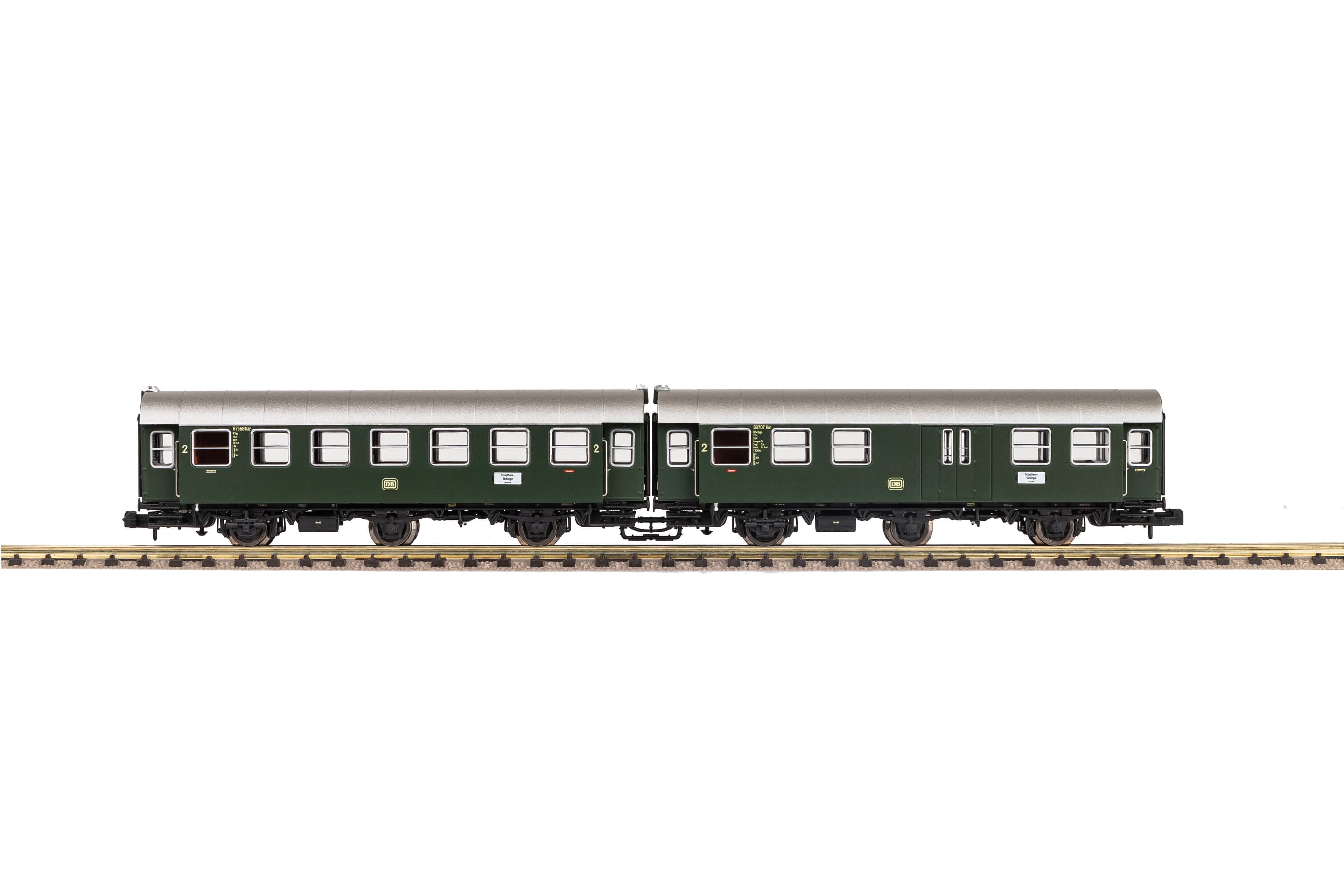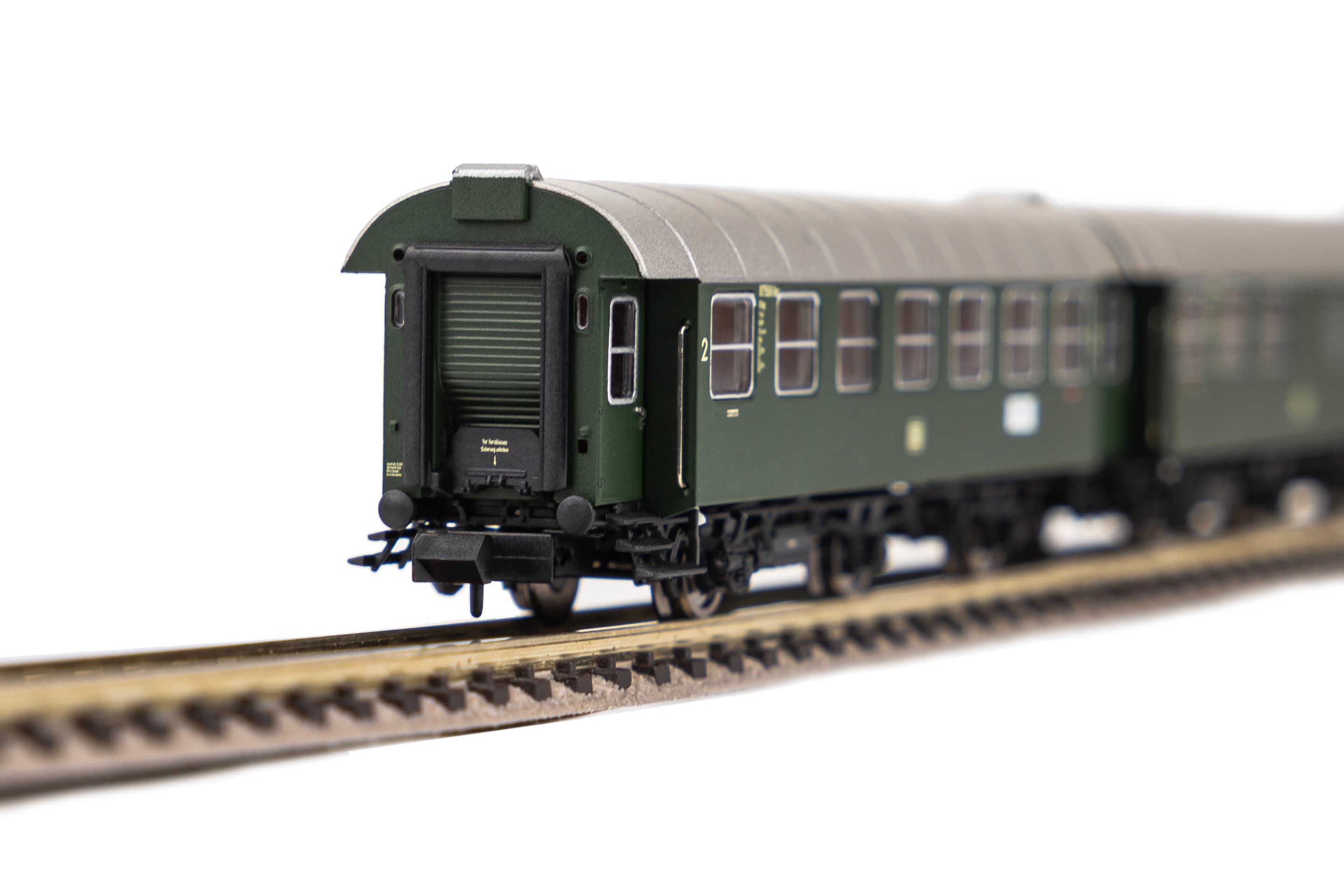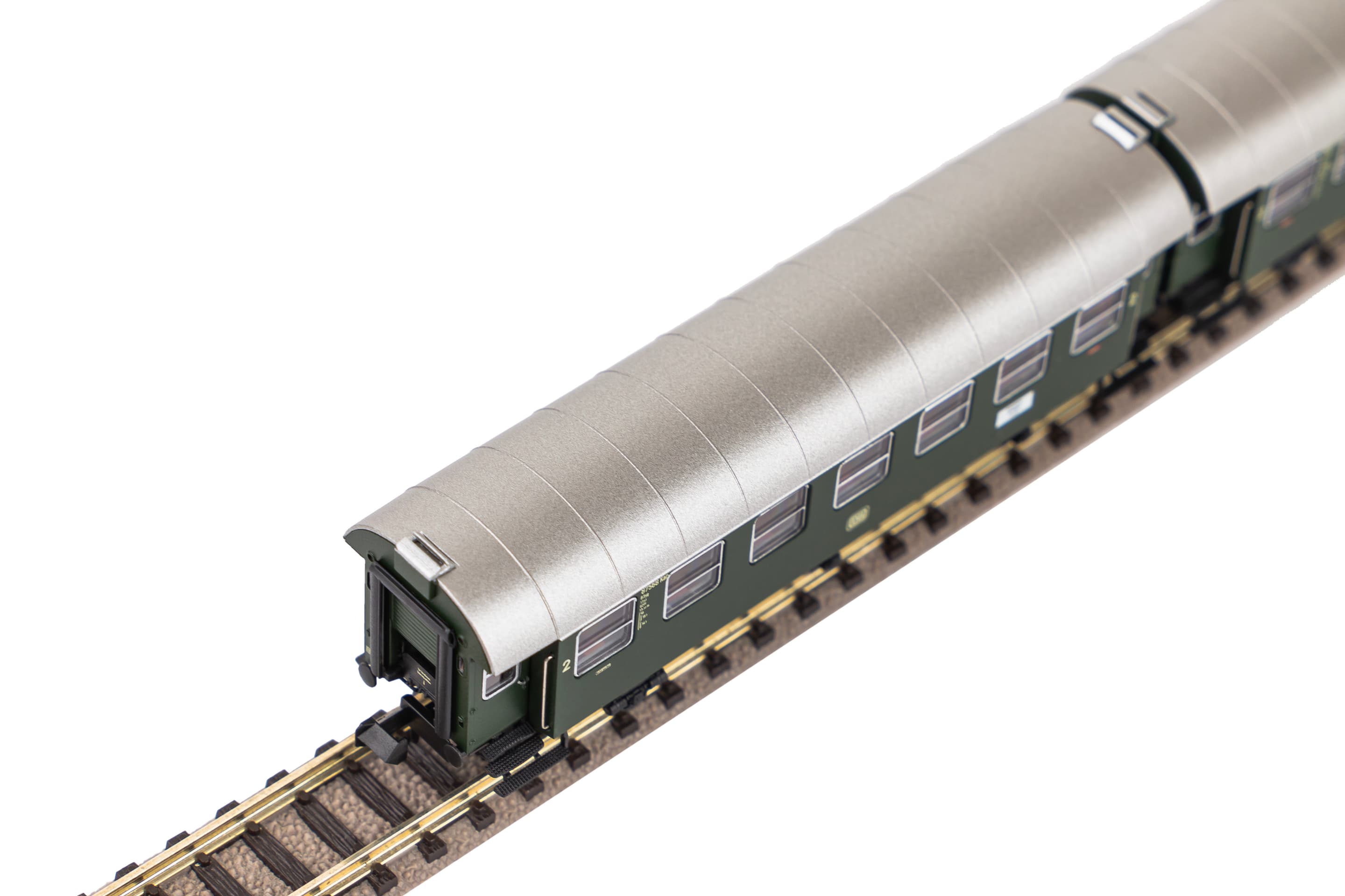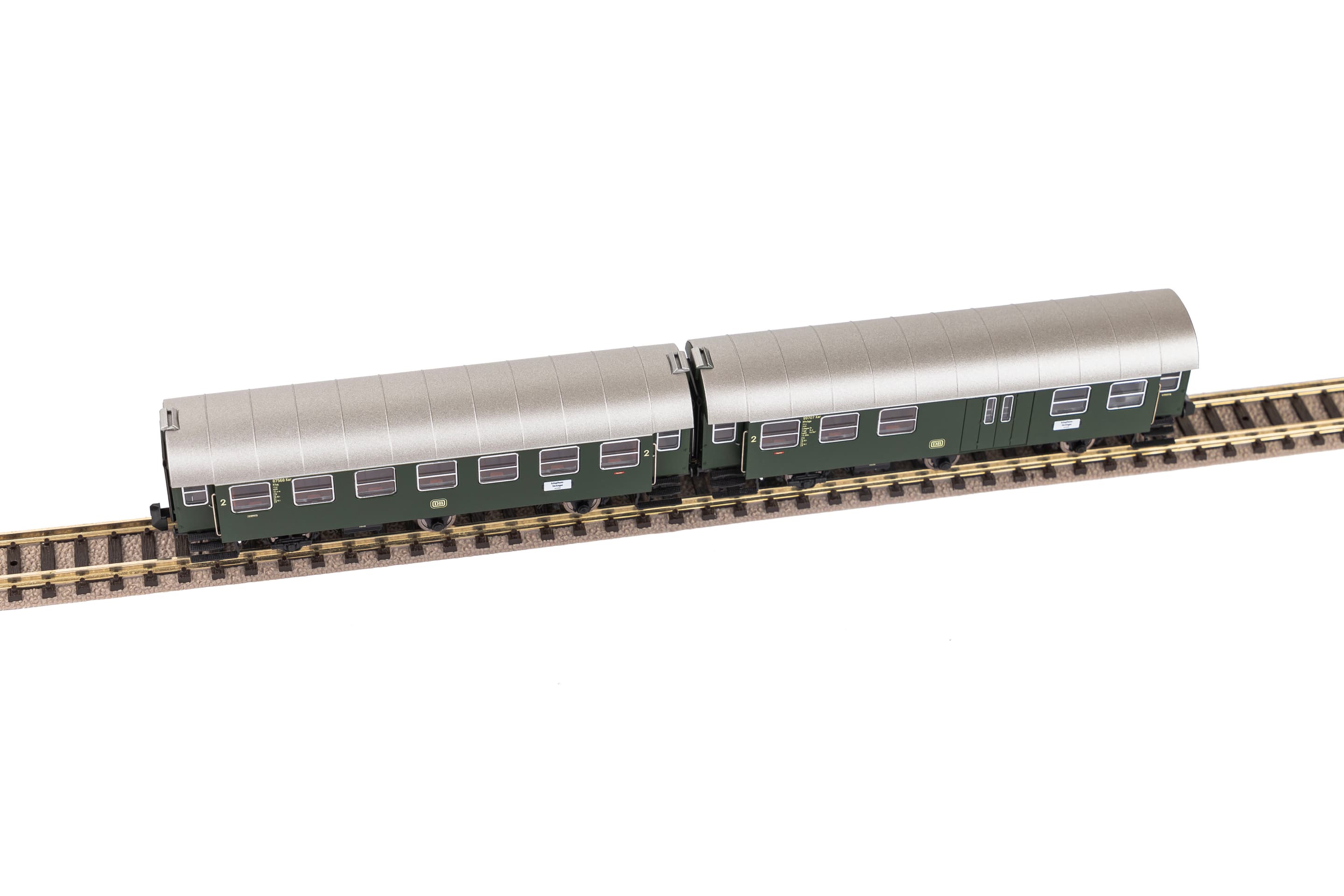 Neuheit 2024: Ab Mitte der 1950er-Jahre entstanden durch Umbau von Länderbahn-Abteilwagen bei der Deutschen Bundesbahn zwei Reisezug-Wagenserien, die als Umbauwagen bezeichnet werden. Anders als beim Vorbild wurde für die PIKO Modelle der dreiachsigen Umbauwagen nicht auf vorhandene Teile zurückgegriffen. Bei den Wagen handelt es sich um vollständige Neukonstruktionen. Die maßstäblichen Fahrzeuge geben das Original bis ins kleinste Detail wieder. Einzeln angesetzte Griffstangen gehören genauso zur zeitgemäßen Konstruktion wie bündig abschließende, glasklare Fenster und eine detaillierte Inneneinrichtung. Die liebevolle Gestaltung setzt sich am Wagenboden fort. Erüberzeugt unter anderem durch freistehende Leitungen und ein filigranes Bremsgestänge. Wie das Vorbild erscheinen auch die N Umbauwagen als kurzgekuppelte Pärchen im Handel und verfügenüber einen vorbildnahen Abstand zwischen den Wagen. Zusammen mit dem PIKO Lokomotivmodell der Baureihe E 32 (Art.-Nr. 40820) lassen sich vorbildgerechte Zugverbände bilden, die zum absoluten Blickfang auf jeder Anlage werden.