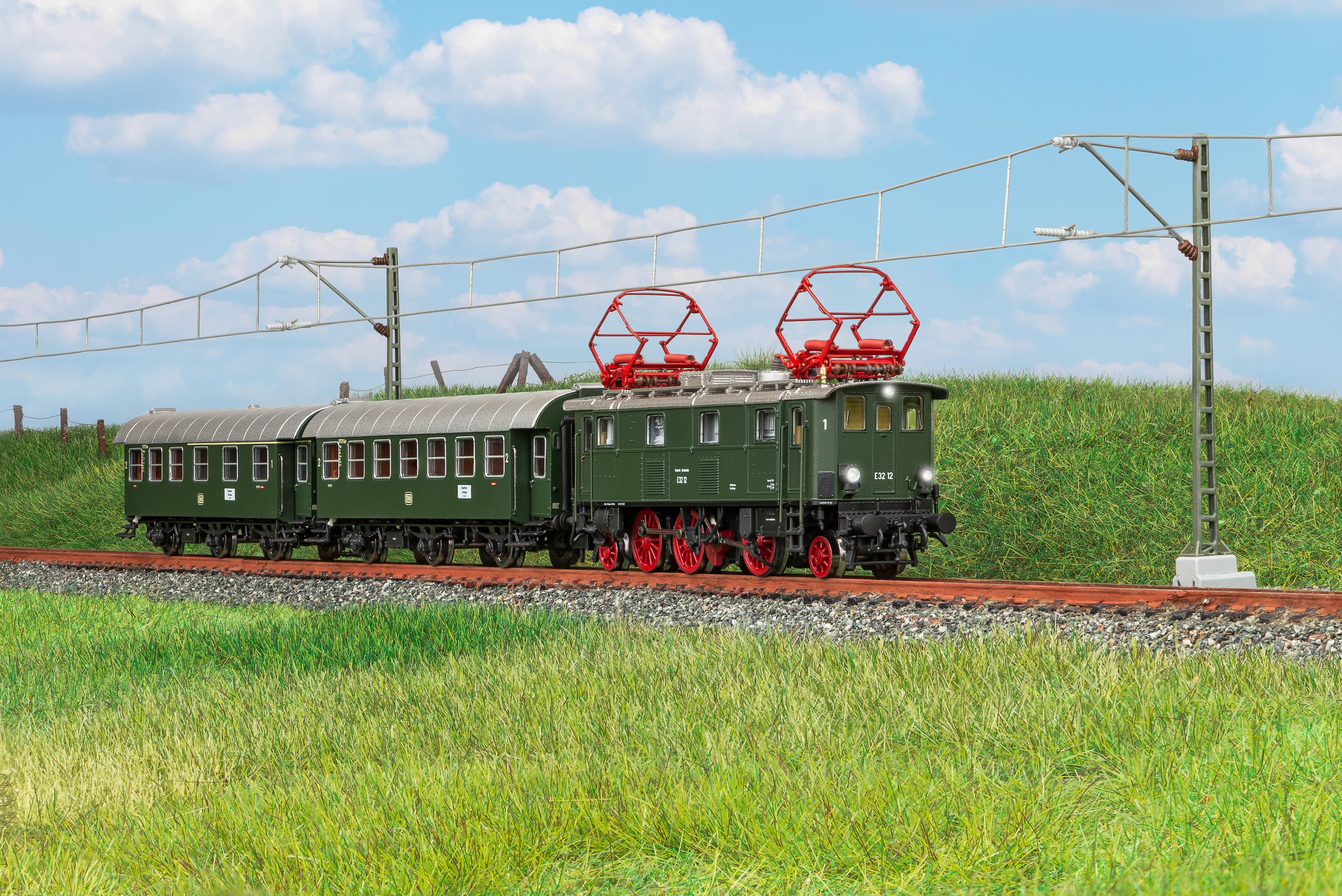 Neuheit 2024: Nach der Baureihe E 91 setzt PIKO mit der Baureihe E 32 eine weitere wichtige Vertreterin unter den Altbau-Elektrolokomotiven auf die N Gleise. Der Stangenantrieb und die Speichenräder, die kurze Bauform sowie die Achsordnung 1’C1‘ lassen die Verwandtschaft der Altbau-Elloks zu den Dampfloks erahnen. PIKO präsentiert dieses Stück Eisenbahngeschichte nun als formvollendetes Modell im Maßstab 1:160. Besonderheiten sind die fein zu erkennenden Detaillierungen, wie die Nietungen am Dach und angesetzte Sandkästen, Bremsschläuche sowie Handstangen. Zeitgenössische Lampen und die filigranen Scherenstromabnehmer runden das Modell optisch ab. Technisch weiß de Lokomotive mit einem serienmäßig eingebauten Lichtwechsel in LED-Technik mit roter Schlussbeleuchtung zu begeistern. Das Modell verfügt ab Werk über einen passenden PSD XP Sound-Decoder und wartet mit stimmigen, vorbildgerechten Beleuchtungs- und Sound-Funktionen auf.