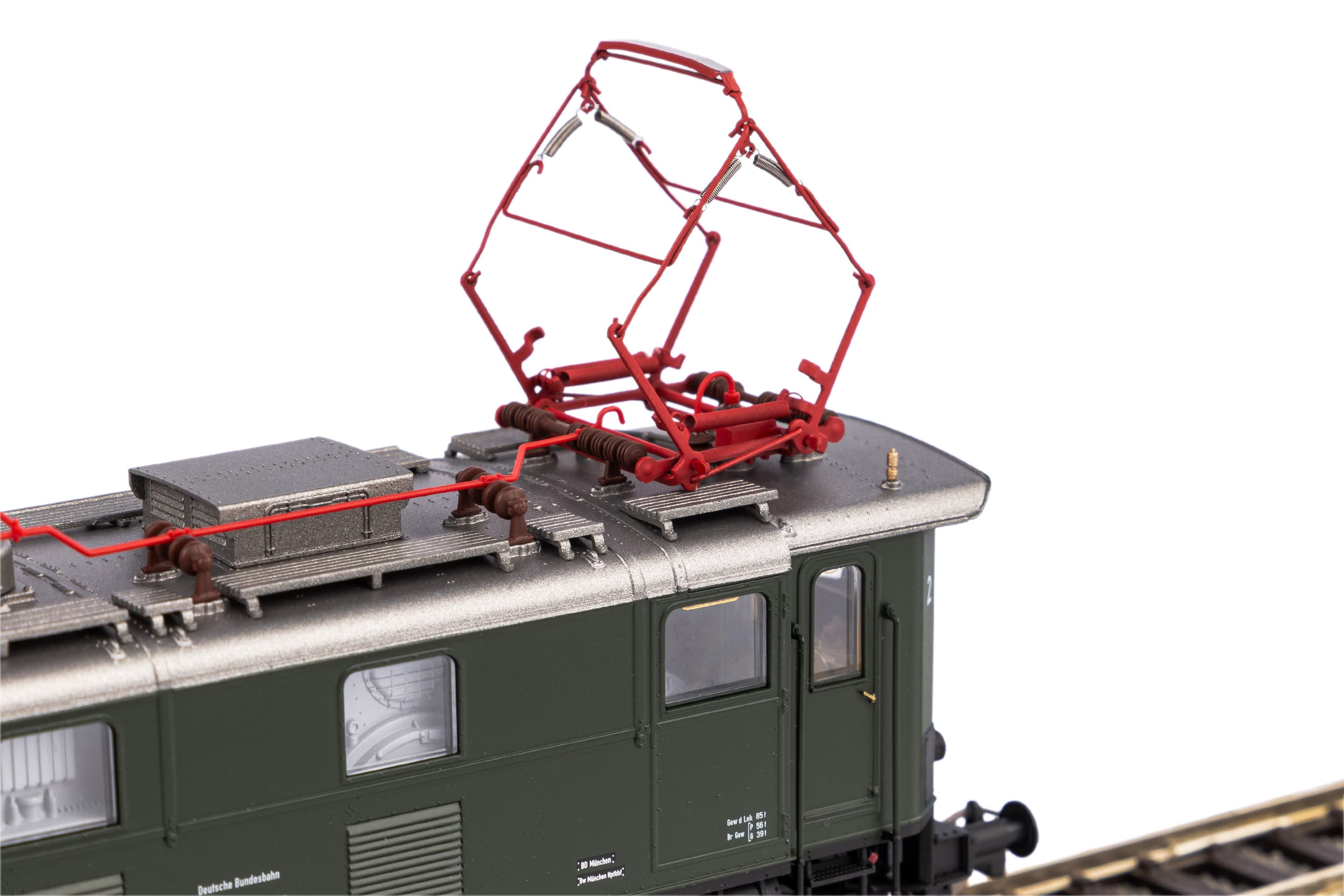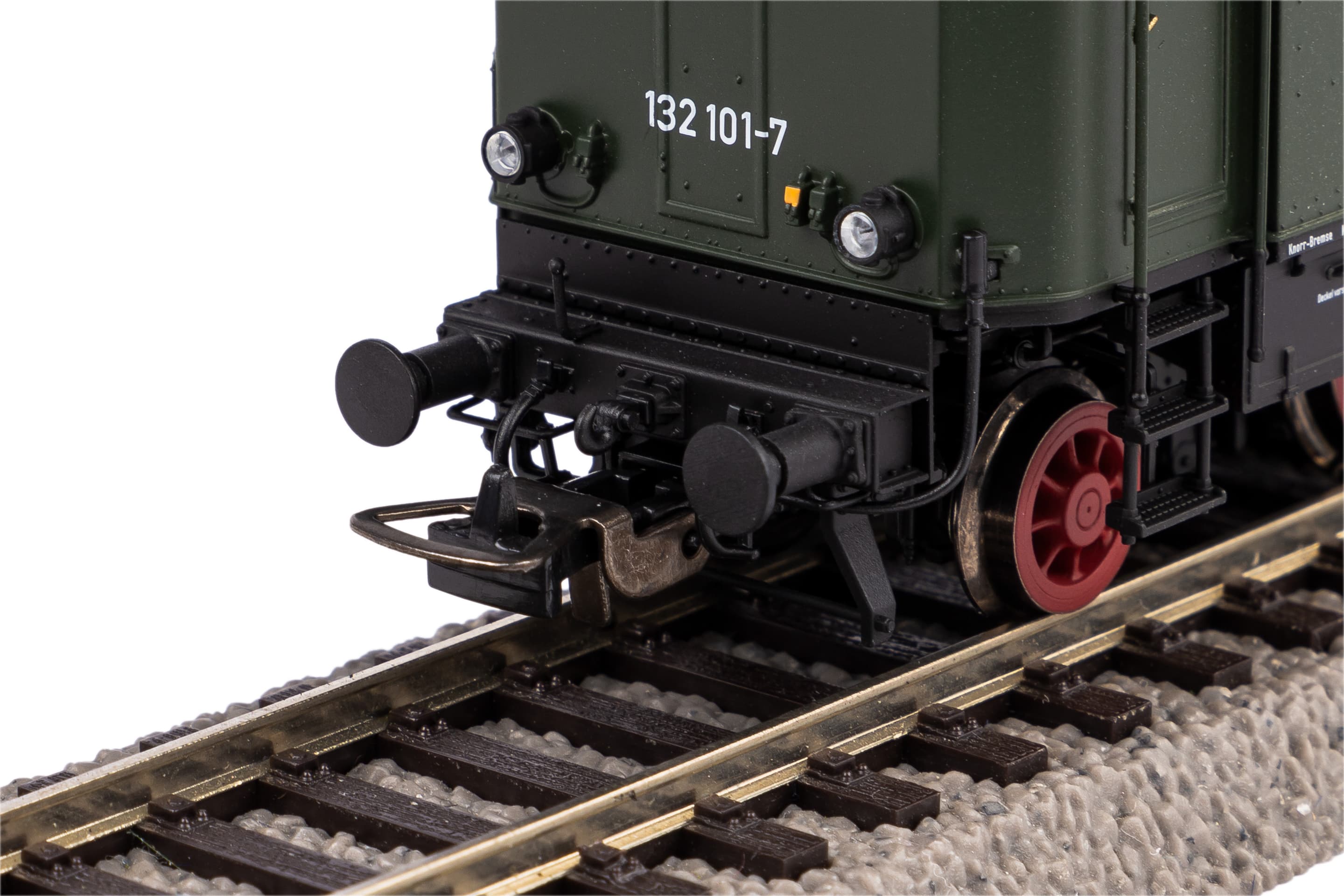 Neuheit 2022: Variante der BR E 32 in der Ausführung als BR 132 in Epoche IV. Nach den Baureihen E 52 (Art.-Nr. 51824) und E 91 (Art.-Nr. 51540) bringt PIKO nun mit der E 32 einen weiteren wichtigen Vertreter der Altbau-Elektroloks. Der Stangenantrieb und die Speichenräder, die kurze Bauform sowie die Achsanordnung 1’C1‘, lassen die Verwandtschaft der Altbau-Elloks zu den Dampfloks durchscheinen. Nun hat PIKO dieses Stück Eisenbahngesichte en miniature umgesetzt. Besonderheiten sind die fein zu erkennenden Detaillierungen, wie die Nietung am Dach, angesetzte Teile, wie Sandkästen, Bremsschläuche und Handstangen. Zeitgenössische Lampen sowie die filigranen Scherenstromabnehmer runden das Modell optisch ab. Technisch weiß die Lok mit einem serienmäßig eingebauten Lichtwechsel in LED-Technik mit roter Schlussbeleuchtung zu begeistern. Für den Digitalbetrieb ist die E 32 von PIKO bestens durch eine PluX22-Schnittstelle nach NEM 658 gerüstet.Eigenschaften:Artikelnummer: 51414Stromsystem: GleichstromBahnverwaltung: DBEpoche: IVMaßbezeichnung: LüP / Länge über PufferMaß [mm]: 150Mindestradius [mm]: 358Digitale Schnittstelle: NEM 658 PluX22(Innen-)Beleuchtung: Digital schaltbare Führerstandsbeleuchtung (mit PluX22 Decoder)Anzahl Haftreifen: 2Kupplung: NEM Schacht + KurzkupplungskulisseSound: PIKO Sound-Decoder nachrüstbar #56594Lichtwechsel: Fahrtrichtungsabhängiger Lichtwechsel weiß / rot