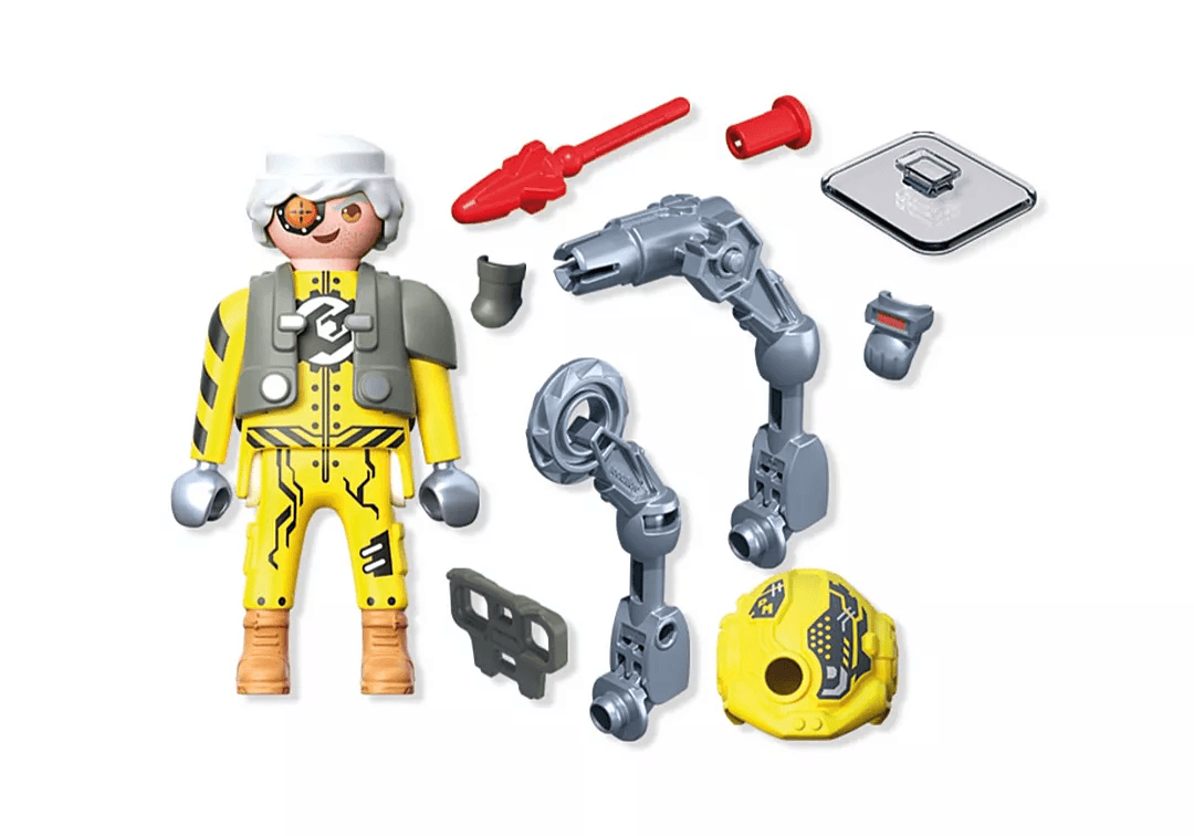 Bereit für mechanische Missionen? Der PLAYMOBIL Roboter-Held „Mr. Mechanic“ ist einer von vier Sammelhelden der PLAYMOBIL Heroes-Serie und bringt Technik, Power und Action in perfekter Symbiose. Mit seinem futuristischen Exoskelett, zwei mächtigen Roboterarmen und einem abnehmbaren Raketenwerfer ist er für jede Herausforderung in PLAYMOPOLIS gewappnet.