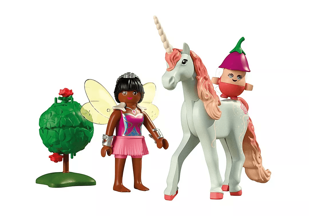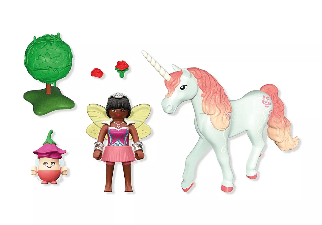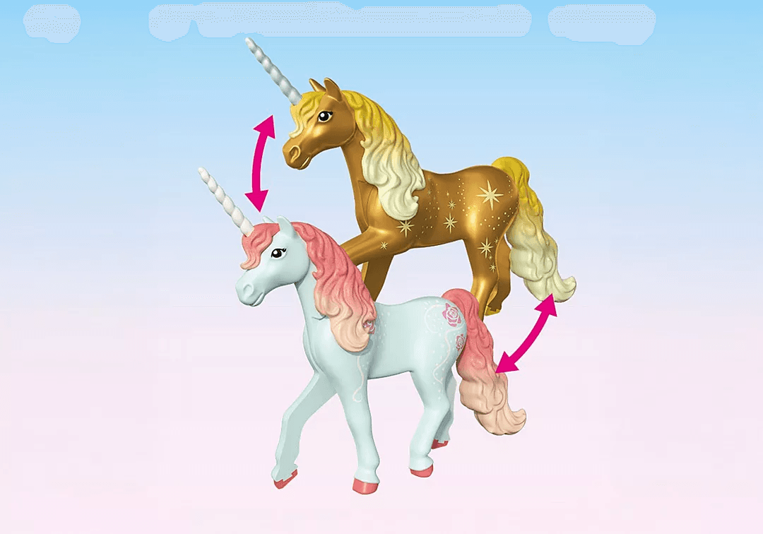 Begleitet wird Himmelsrose von einer bezaubernden Fee und dem niedlichen Joyling, die gemeinsam für zauberhafte Abenteuer sorgen. Das Besondere: Mähne, Schweif und Horn des Einhorns sind austauschbar und lassen sich mit anderen Einhörnern der PLAYMOBIL-Serie kombinieren – für eine ganz persönliche magische Herde!