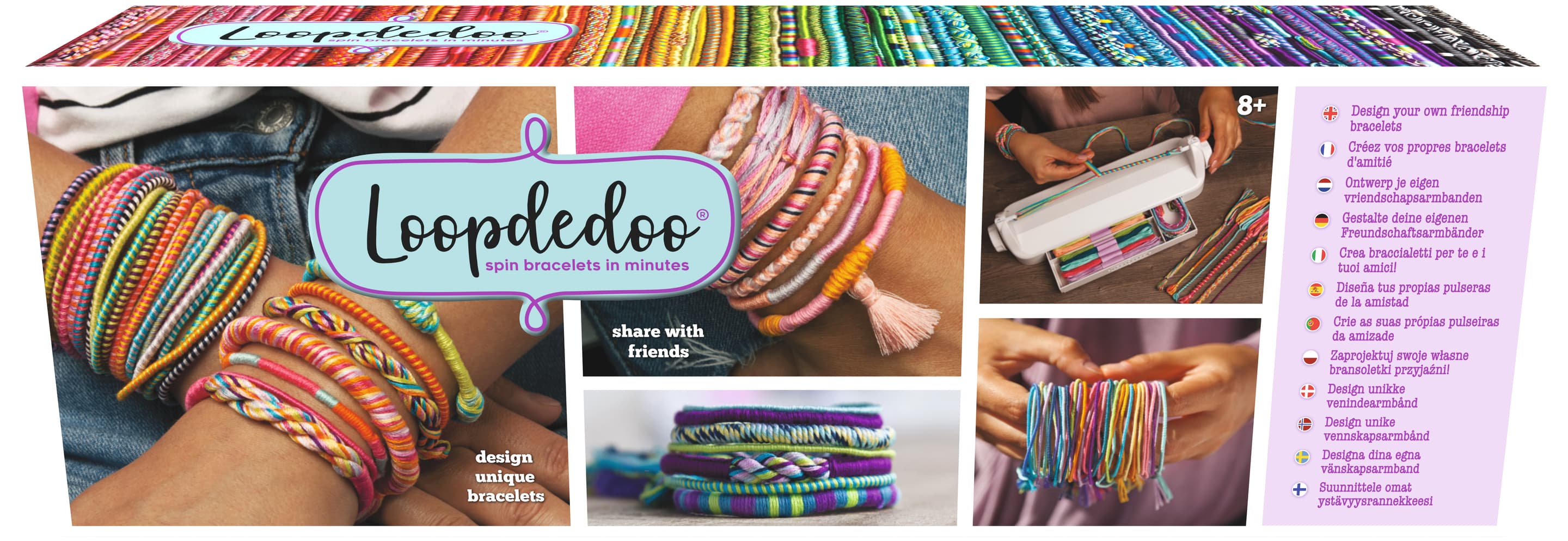 Mit dem Loopdedoo Bracelet Maker kannst du in wenigen Minuten einzigartige Armbänder gestalten. Es gibt keine festen Muster – du entscheidest selbst über Design, Farben, Dicke und Schlaufen. Kreiere schnell und einfach Armbänder, die so individuell sind wie du!
