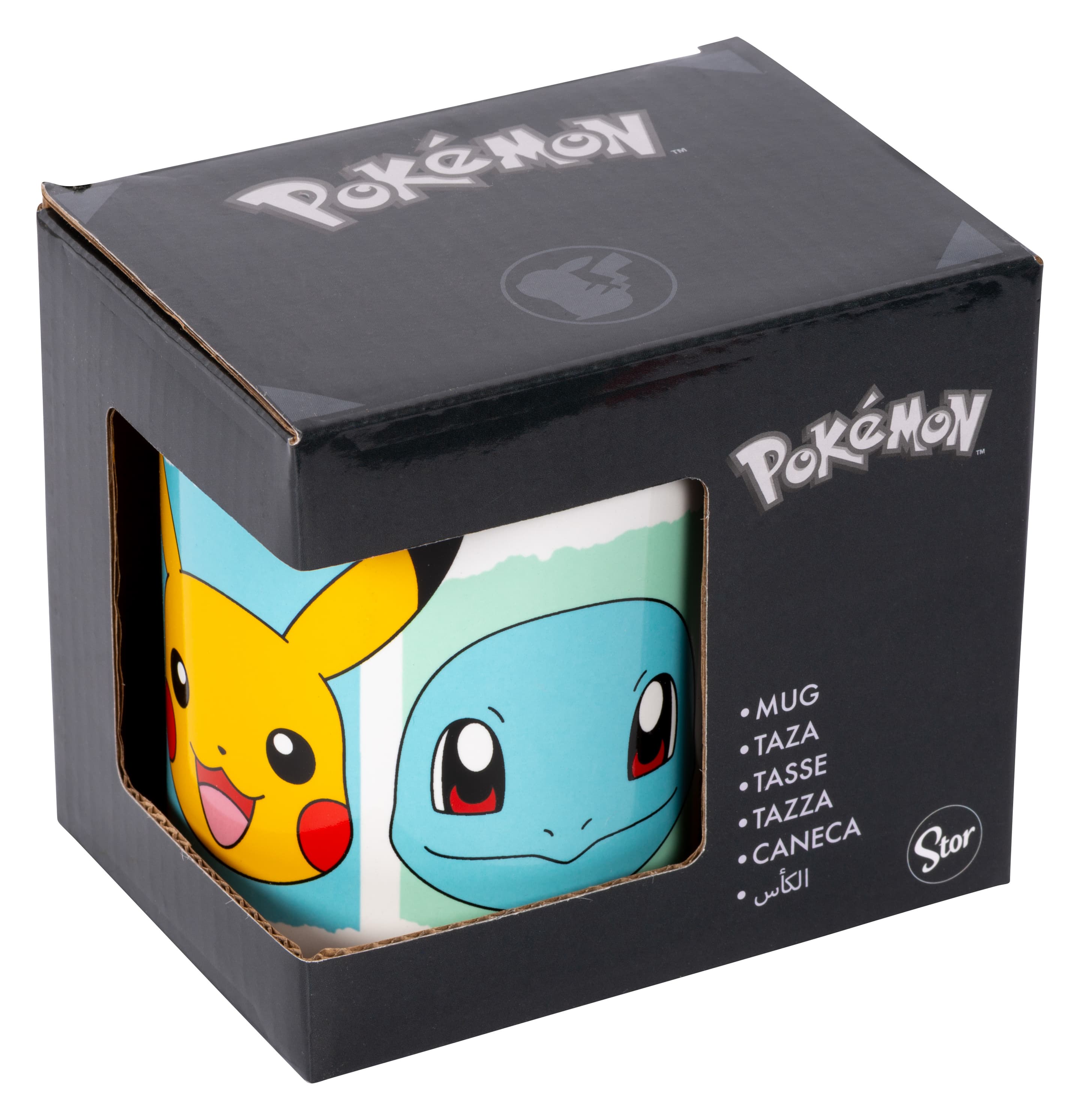 Beginne deinen Tag mit einem Lächeln - denn auf dieser stylischen Pokémon-Tasse blicken dir die fröhlichen Gesichter von Pikachu, Bisasam, Glumanda