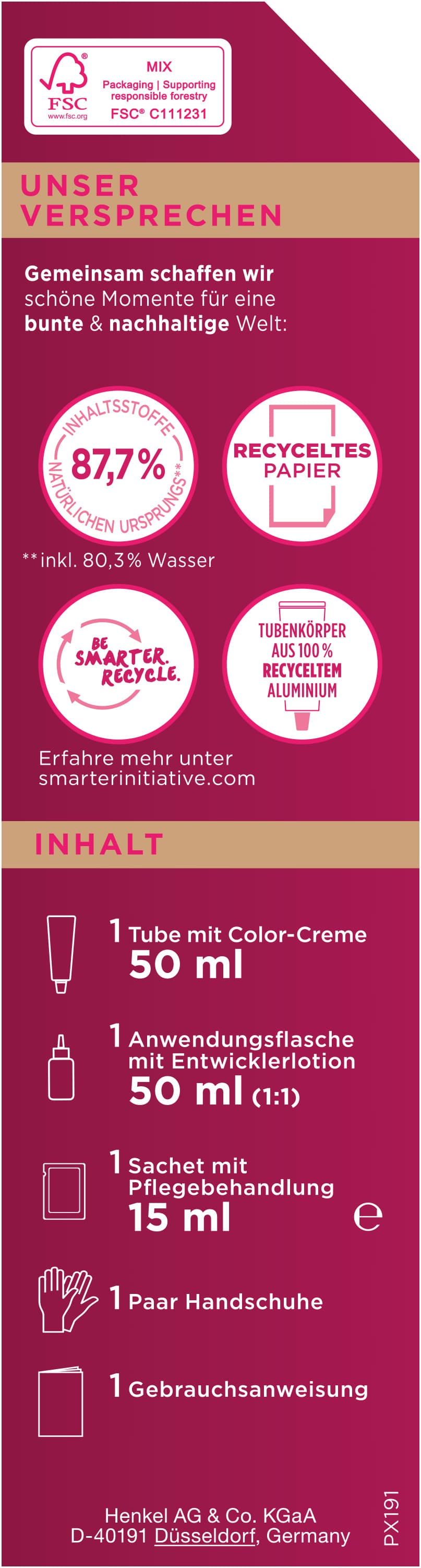 • Langanhaltendes Farbergebnis – Die reichhaltige Color-Creme mit Öl-in-Creme-Formel dringt tief in das Haarinnere ein – für eine langanhaltende Farbbrillanz bis zur nächsten Coloration