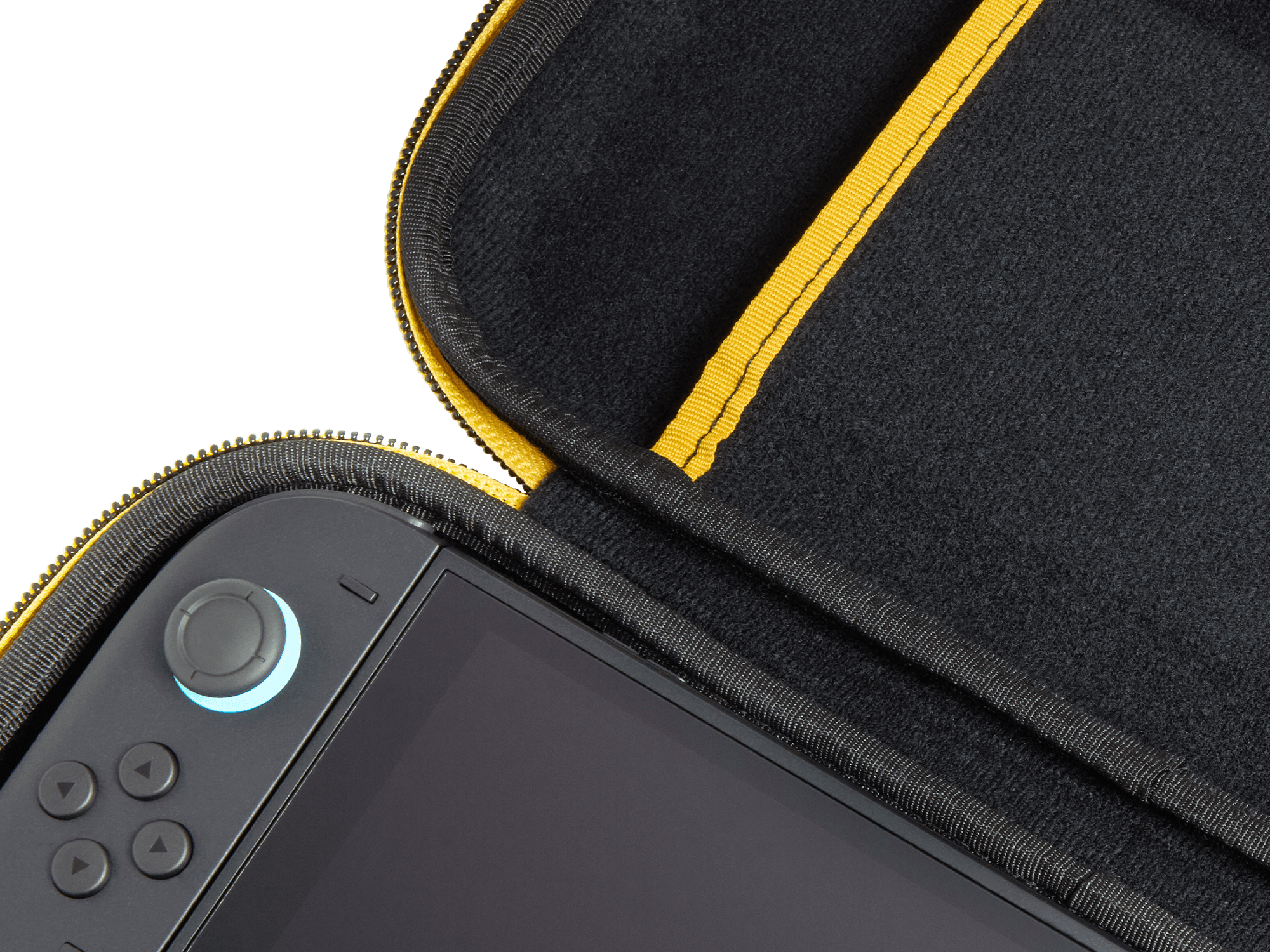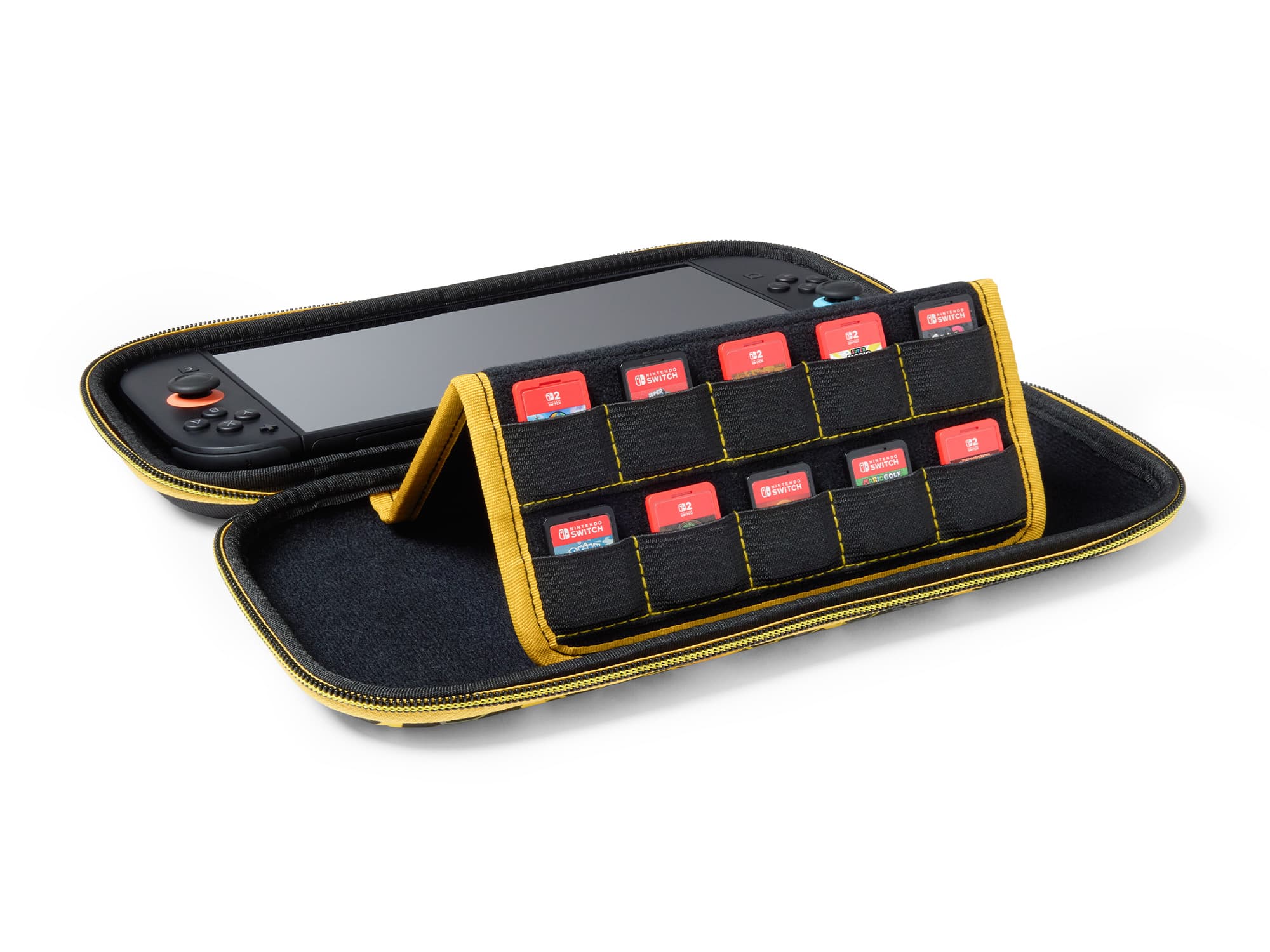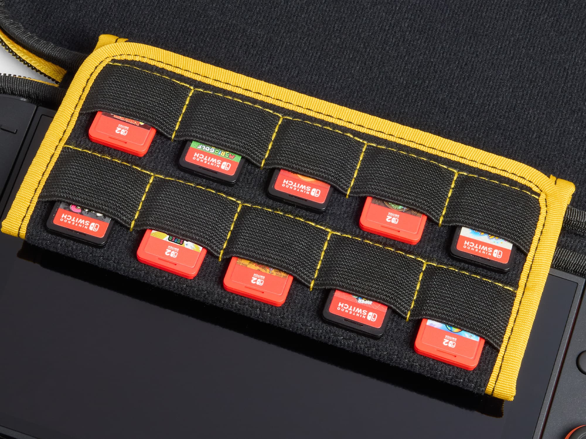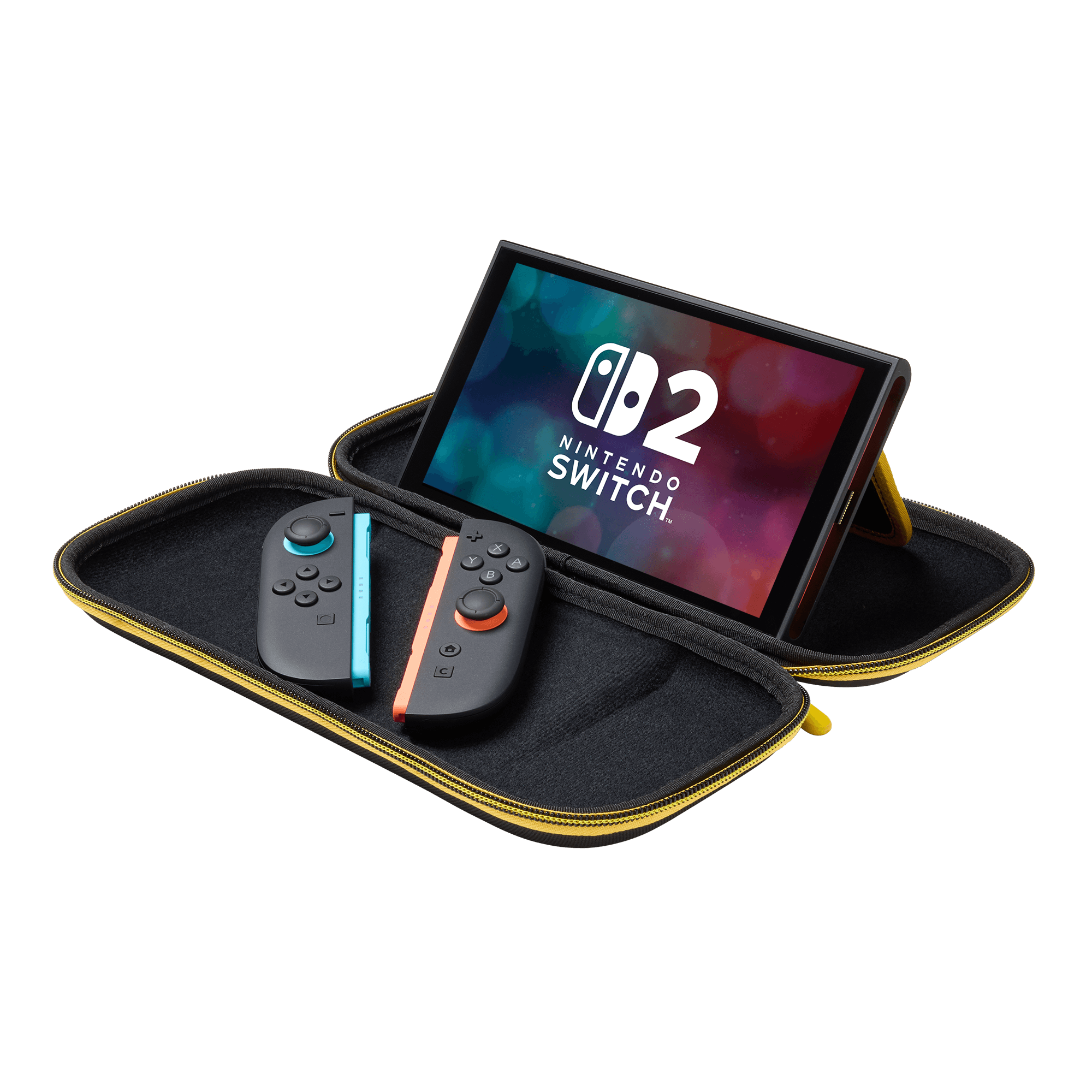 Mit diesem offiziell lizenzierten schlanken Etui von PowerA kannst du deine Nintendo Switch 2 überallhin mitnehmen. Im Inneren findest du ein weiches Stofffutter und einen integrierten Standfuß mit Platz für bis zu zehn Softwarekarten. Wenn das System im Etui verstaut ist, dient der integrierte Standfuß auch als gepolsterter Displayschutz, damit dein Display nicht zerkratzt wird. Mit diesem tragbaren Case kannst du auch unterwegs Spaß mit deinem Nintendo Switch 2-System haben. Überall. Jederzeit.