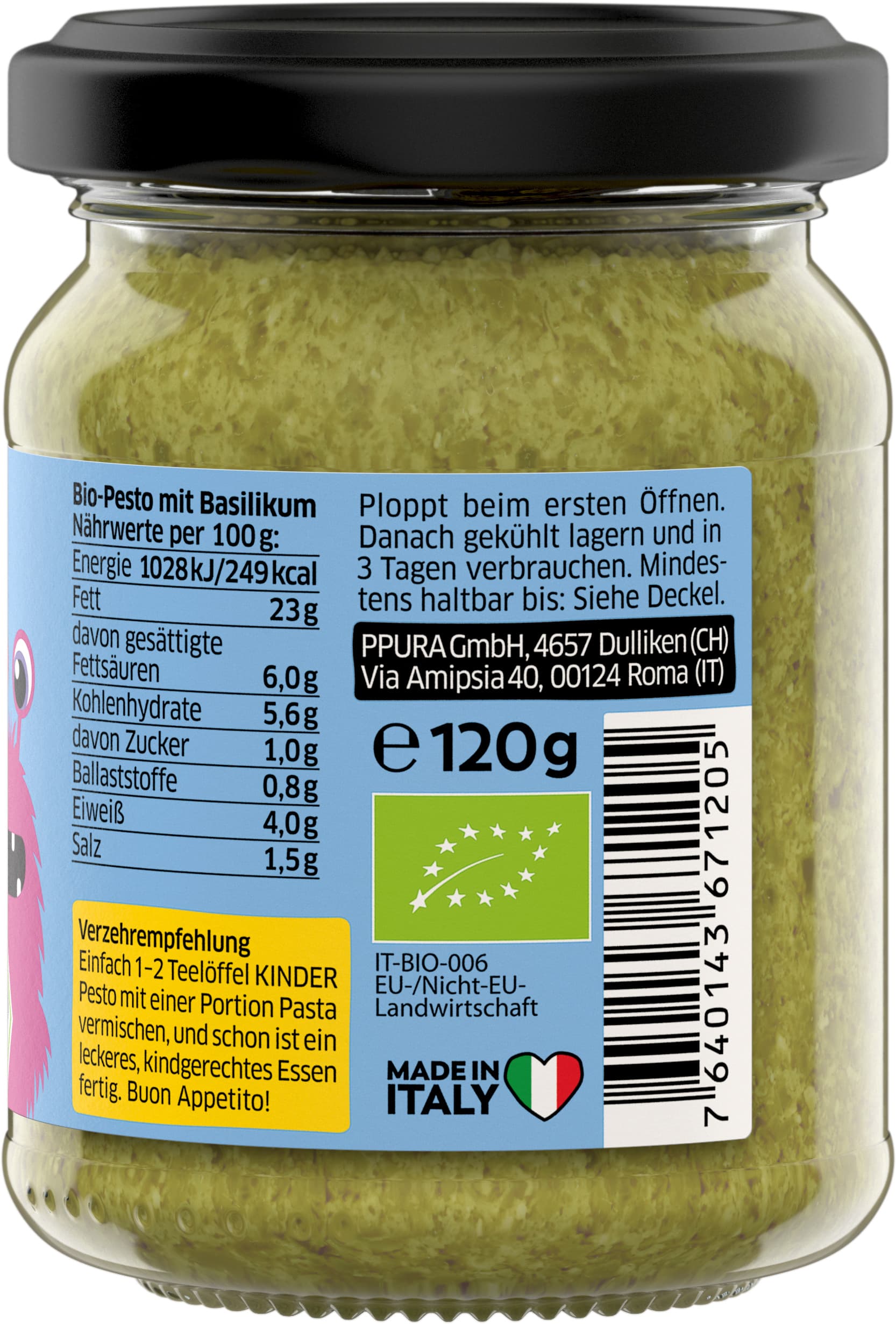 PPURA Bio Mildes Pesto Verde für Kinder, 100% natürlich