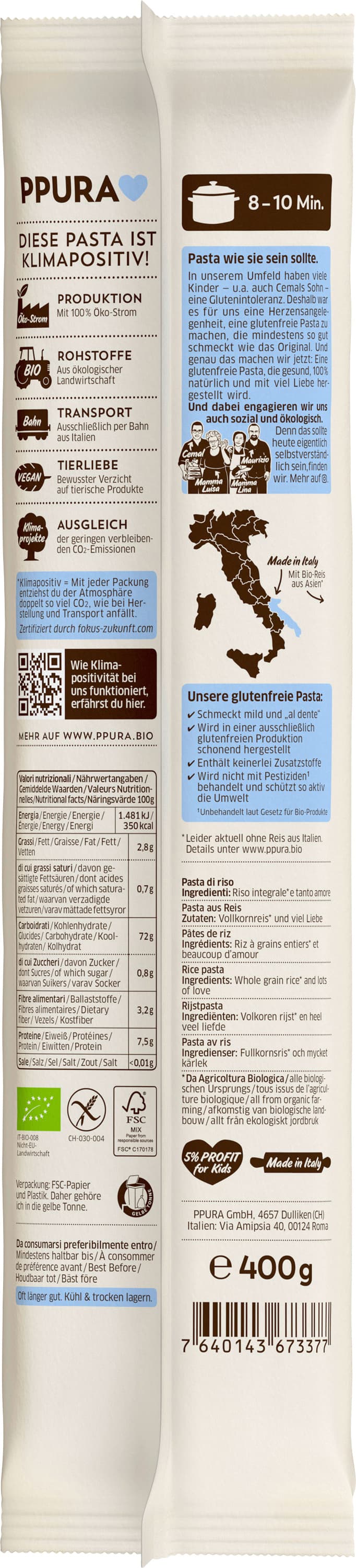 - *Alle PPURA Pastas sind klimapositiv = Jede Verpackung entzieht doppelt so viel CO2 aus der Atmosphäre wie bei Herstellung und Transport anfallen.Wie wir das schaffen: