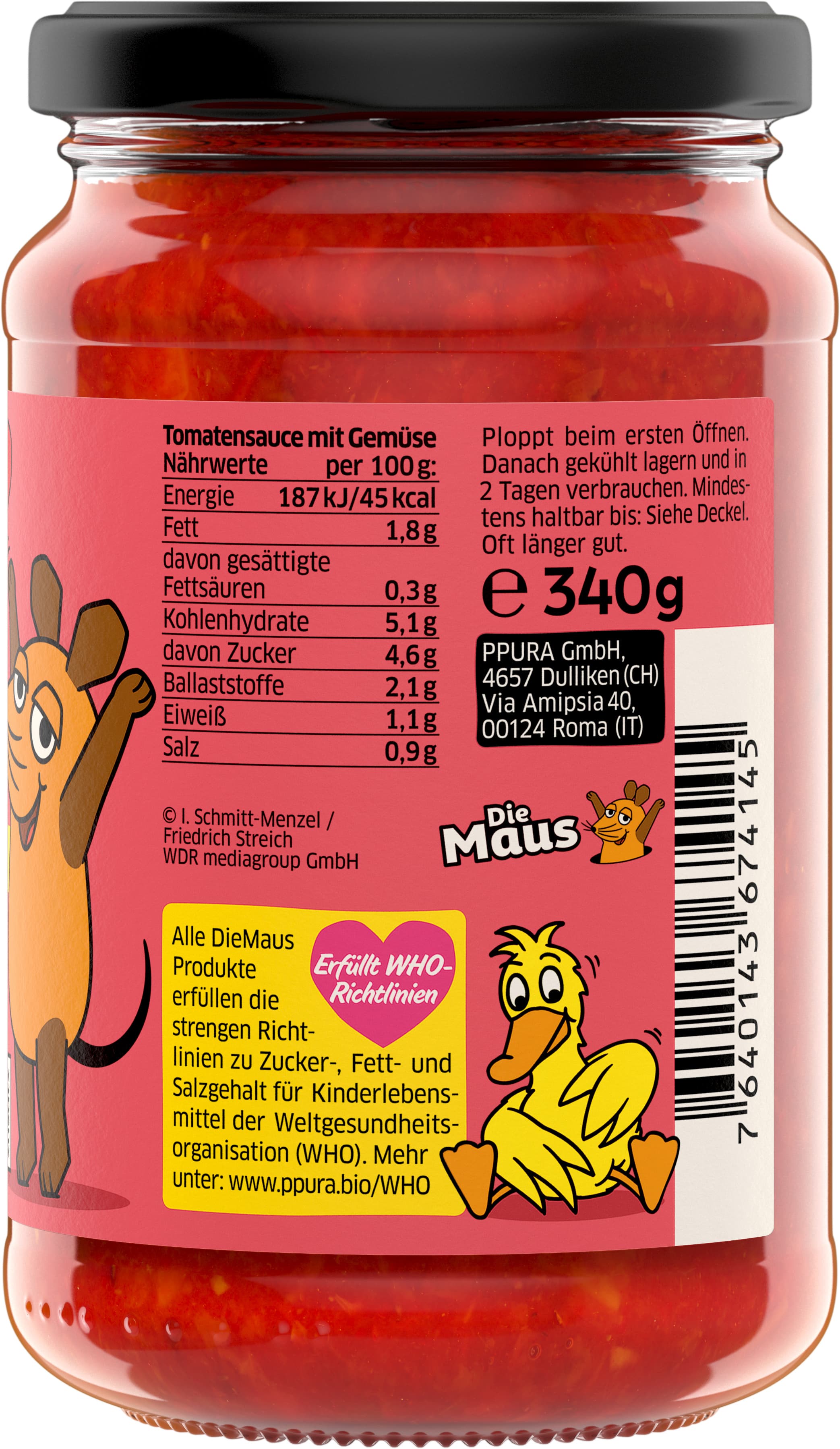Und wie alle KINDER Produkte von PPURA erfüllt auch unsere DieMaus-Sauce die strengen Richtlinien zu Zucker- und Salzgehalt für Kinderlebensmittel der Weltgesundheitsorganisation (WHO).