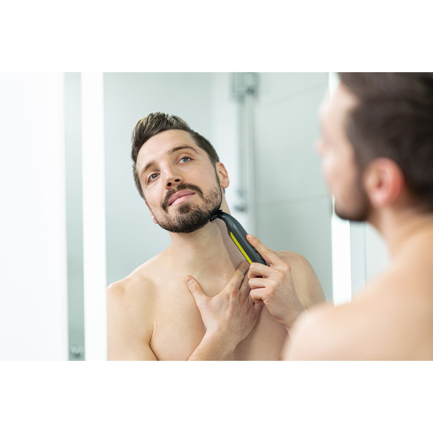 | Lieferumfang | Bart- und Konturentrimmer, 3 Aufsteckkämme: 1 mm, 3 mm, 5 mm, USB-Ladekabel, Reinigungsbürste, Bedienungsanleitung |