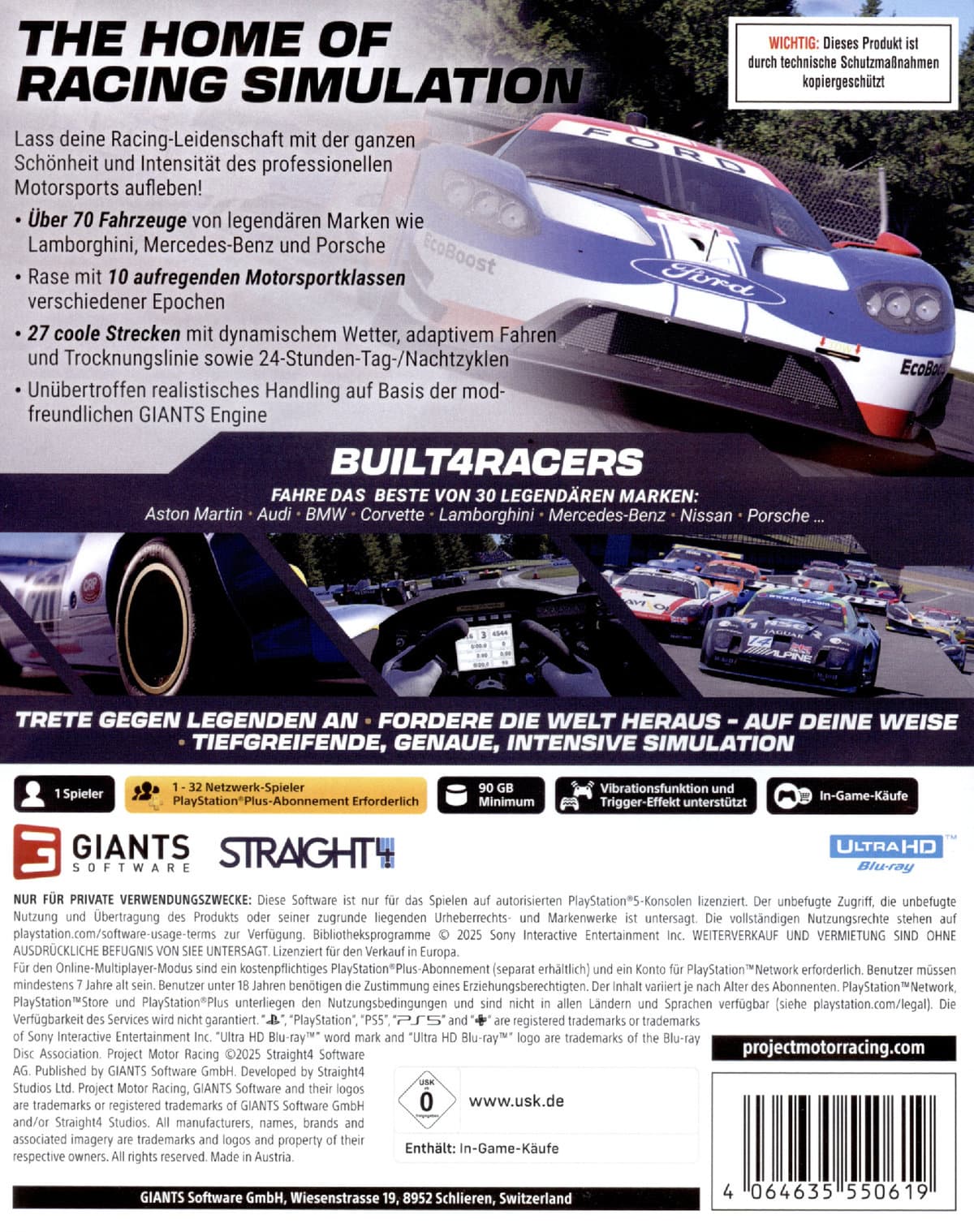 Project Motor Racing entfacht die ganze Leidenschaft, Schönheit und Intensität des professionellen Motorsports. Mit den kultigsten Autos, Klassen und Strecken, spannendem Gameplay und neuen Maßstäben in Sachen Steuerkontrolle, die auf der mod-freundlichen GIANTS Engine basiert, ist dies die neue Heimat der Rennsimulation.