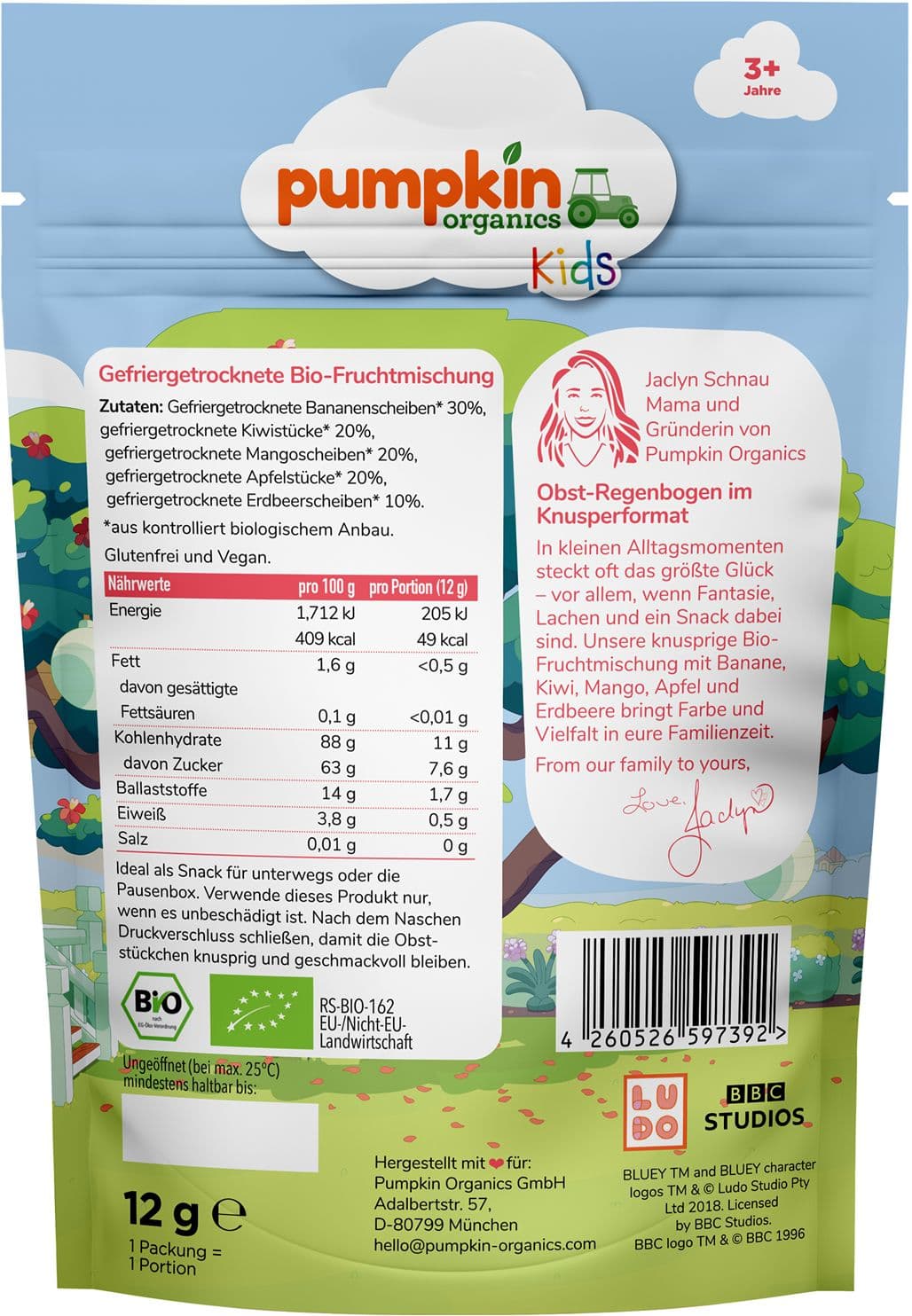 pumpkin organics Bluey Bio Banane, Kiwi, Mango, Apfel und Erdbeere Fruchtchips