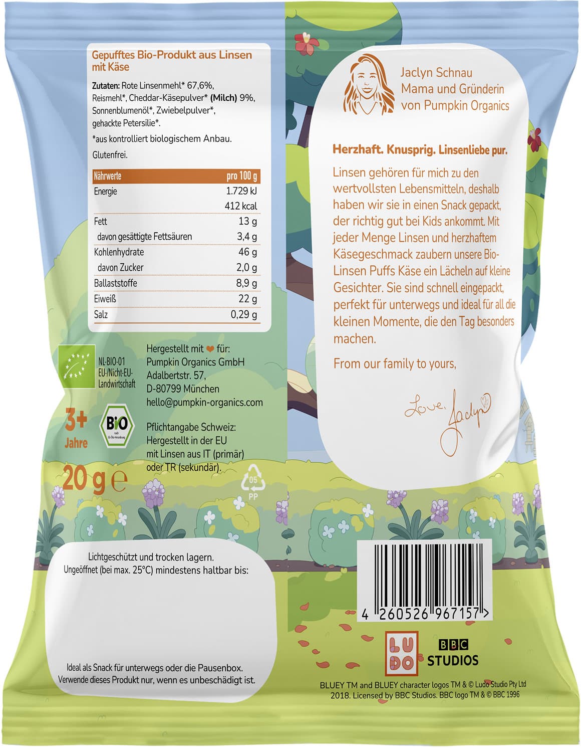 pumpkin organics Bluey Bio Linsen Puffs Käse