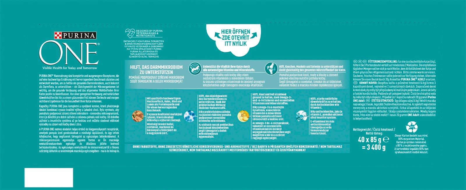 Die PURINA ONE® Nassnahrung kombiniert an spezielle Bedürfnisse angepasste und hochwertige Ernährung mit einem hervorragenden Geschmack. Speziell entwickelt von Purina’s Tierärzten und Ernährungswissenschaftlern, bieten diese kompletten und ausgewogenen Rezepturen eine Kombination aus zarten Stückchen und Gemüse in einer schmackhaften Sauce. Zubereitet mit qualitativ hochwertigen Zutaten und reich an Vitaminen und Mineralstoffen, liefern sie eine bedarfsgerechte Ernährung für jeden Lebensstil oder jede Lebensphase Ihrer Katze. it PURINA ONE® können Sie sicher sein, dass Sie ihr die Ernährung bieten, die sie braucht, um heute und morgen gesund zu bleiben.