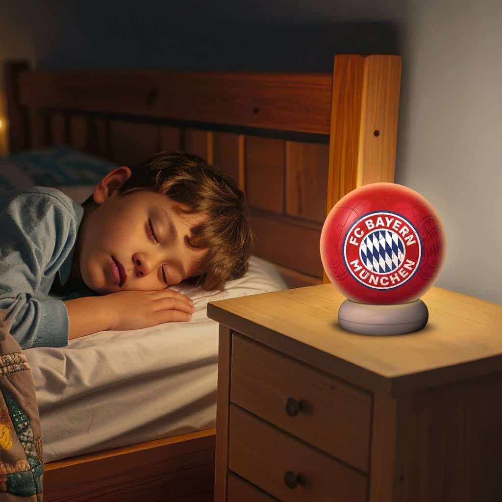 Die Nachtlichter von Ravensburger sind ein Hingucker in jedem Kinderzimmer – ob als dekorative Einschlafhilfe oder coole Nachttischlampe! Der in zwei Stufen dimmbare Leuchtsockel lässt den 3D Puzzle-Ball von innen erstrahlen Die besondere Geschenkidee für alle FC Bayern Fans und Puzzle-Fans ab 6 Jahren Inhalt: 72 dreidimensional geformte Puzzleteile, 1 LED Leuchtsockel; Schwierigkeitsgrad 2/5; Höhe ca. 15,5cm, Breite ca. 13cm; Stromversorgung über 3x 1,5V AA/LR6 Batterien oder USB-C-Kabel (nicht im Lieferumfang enthalten) Puzzlespaß mit Gelinggarantie: Die hochwertigen, formstabilen Kunststoff-Puzzleteile sind nummeriert und halten dank Easyclick Technology passgenau zusammen – ganz ohne Klebstoff. Mit bebilderter Anleitung Schwierigkeitsgrad {=ADas Leuchtmodul verfügt über 2 Helligkeitsstufen und ist kinderleicht zu bedienen: den fertigen Puzzle-Ball einfach auf den Sockel setzen und herunterdrücken. Funktioniert kabellos mit Batterien oder über den integrierten USB-C-Anschluss + SteckdoseTTRVAL(365)}/5; enthält 72 nummerierte Puzzleteile + leichter Ständer mit LED + Anleitung, Verpackung kann abweichen