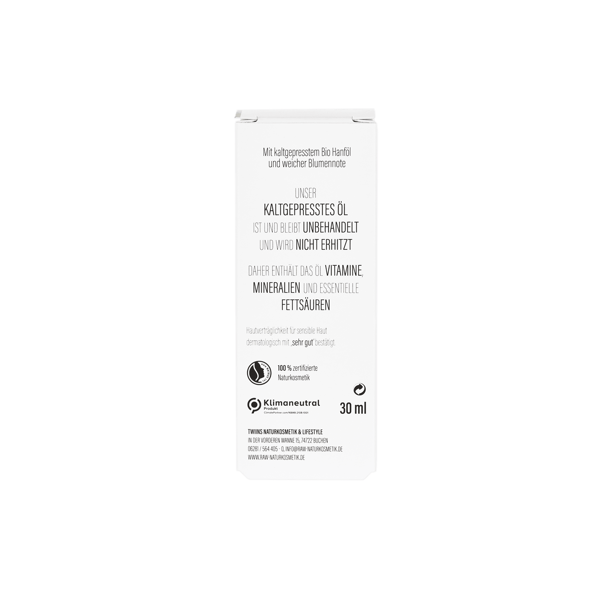 Das raw Hanf Gesichtsöl ist die natürliche Lösung für unreine, fettige und reife Haut. Dank seiner entzündungshemmenden Eigenschaften wirkt es Pickeln und Rötungen entgegen, beruhigt gereizte Haut und reguliert überschüssigen Talg – ohne die Poren zu verstopfen. Reich an kaltgepresstem Bio Hanföl, wertvollen Fettsäuren und Antioxidantien, pflegt es intensiv, zieht schnell ein und hinterlässt ein ausgeglichenes, frisches Hautgefühl. Gleichzeitig glättet und strafft es sanft, wodurch auch reife Haut neue Spannkraft erhält. Der natürliche Duft aus Hanf, Ylang-Ylang, Neroli und Vanille macht jedes Pflegeritual zu einem wohltuenden Erlebnis – morgens, abends oder als puristische All-in-One-Pflege.