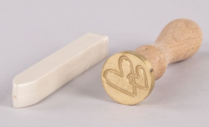 Packungsinhalt: 1 Siegelstempel 2,5 cm ø, Motiv Herzen, mit Holzgriff + 1 Stick Siegelwachs, weiß metallic, 12 g, ca. 1 x 1 cm, Höhe ca. 9 cm (reicht für 6 – 8 Wachssiegel)