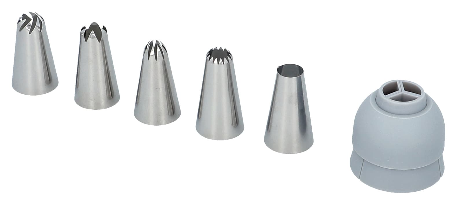 | Materialdetails | Spritzbeutel: Nylon, Adapter: Kunststoff, Tüllen: Edelstahl |
