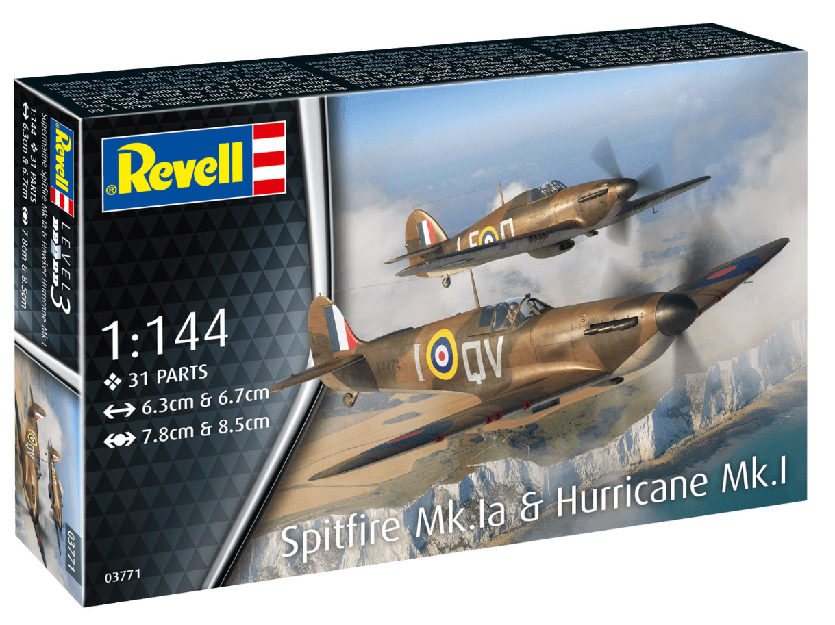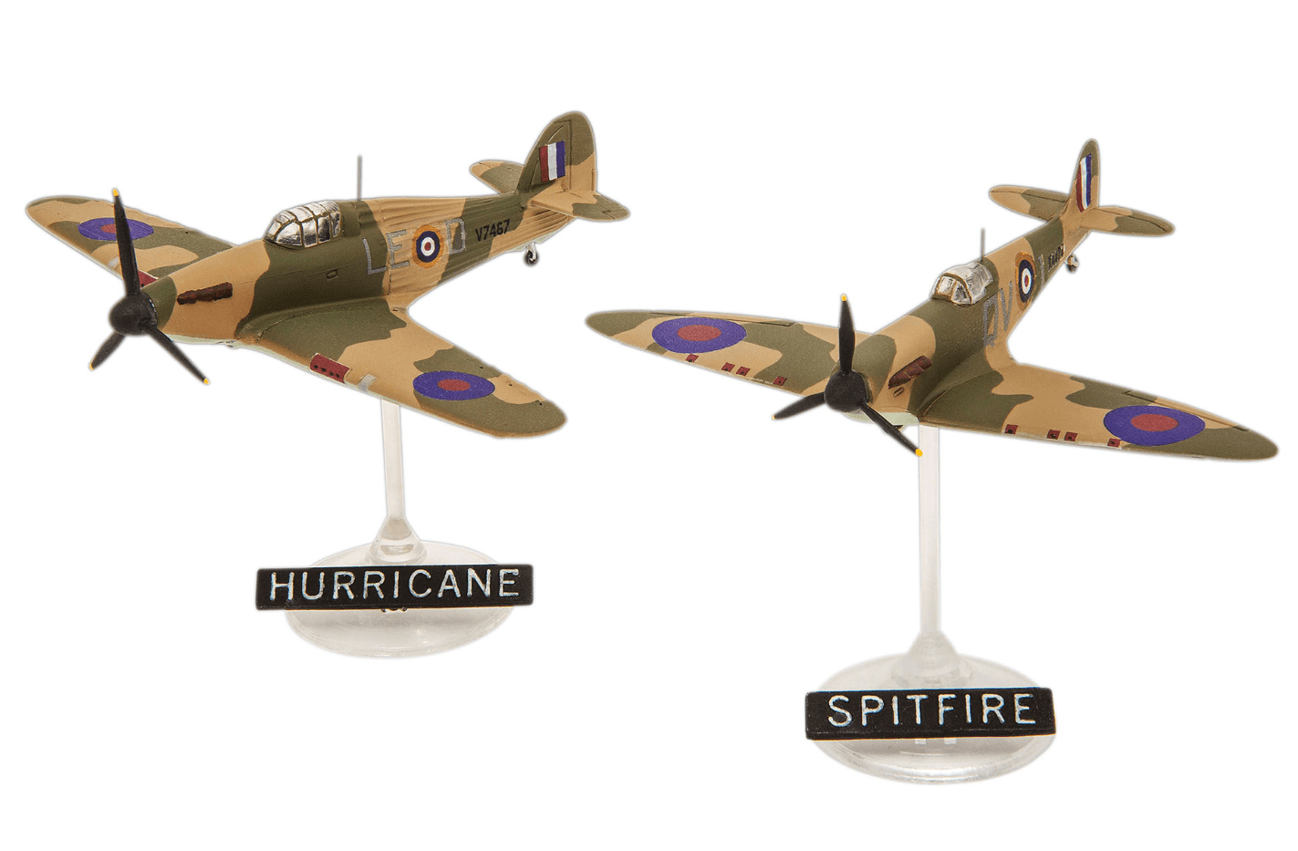 2 vollständige Modellbausätze: Supermarine Spitfire Mk.Ia & Hawker Hurricane Mk.I