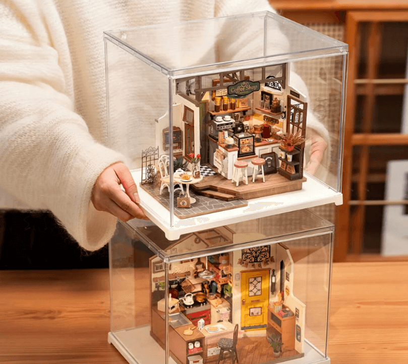 Die Vitrine DF03L hält Ihr DIY-Miniaturhaus mit unserer vielseitigen und stapelbaren Staubschutzabdeckung staubfrei. Geeignet für alle Miniaturhäuser (DGXX) außer DG12.
