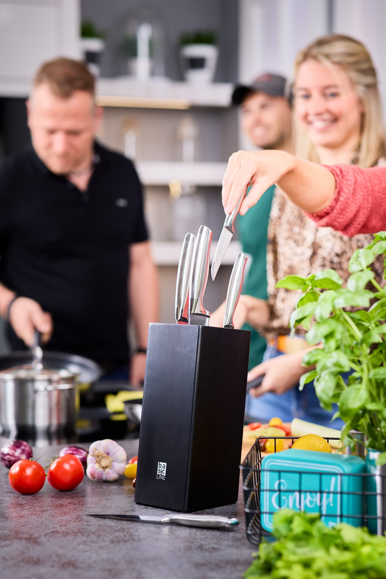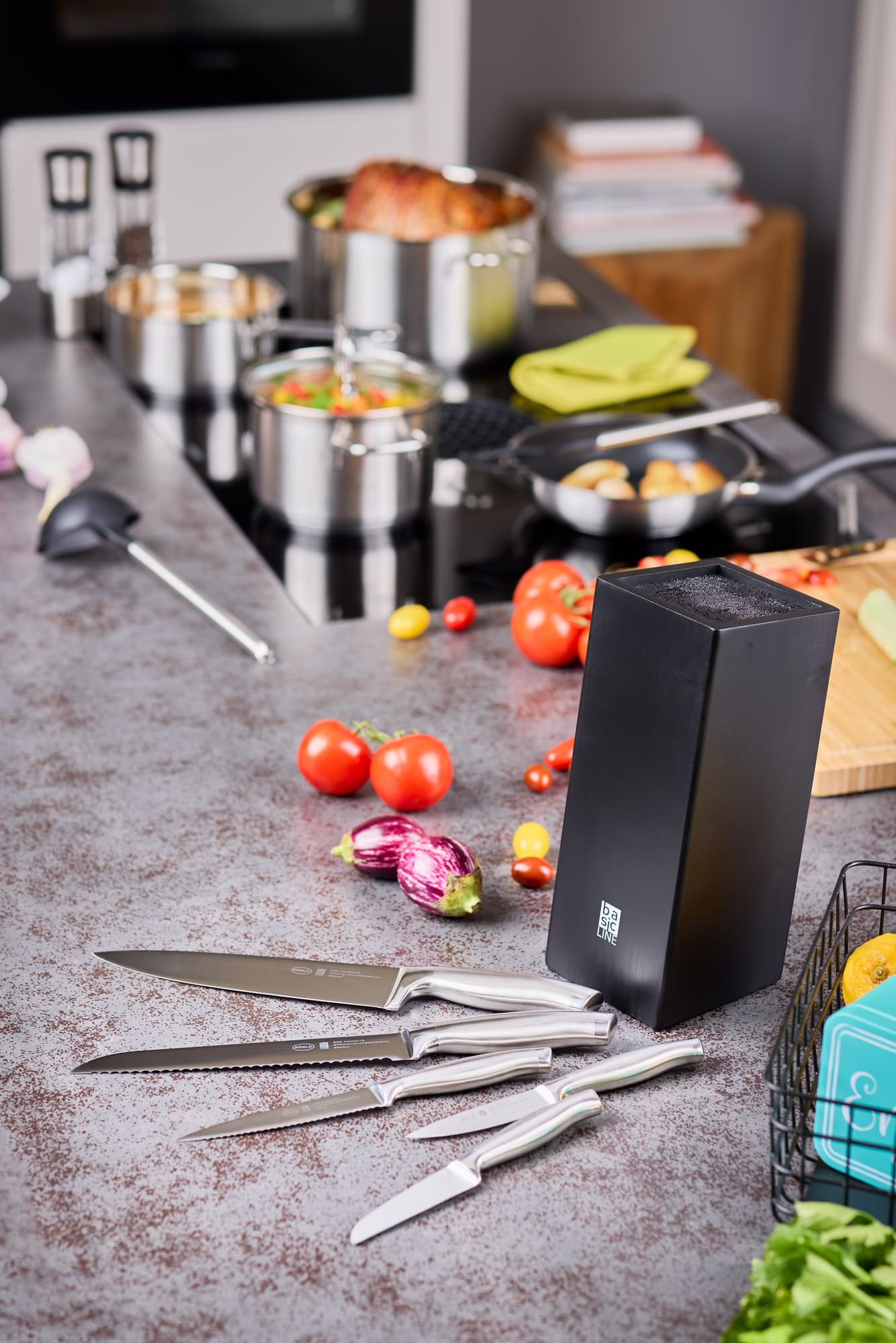 - Inkl. 5 Küchenmessern aus gehärtetem Spezialklingenstahl X50CrMoV15